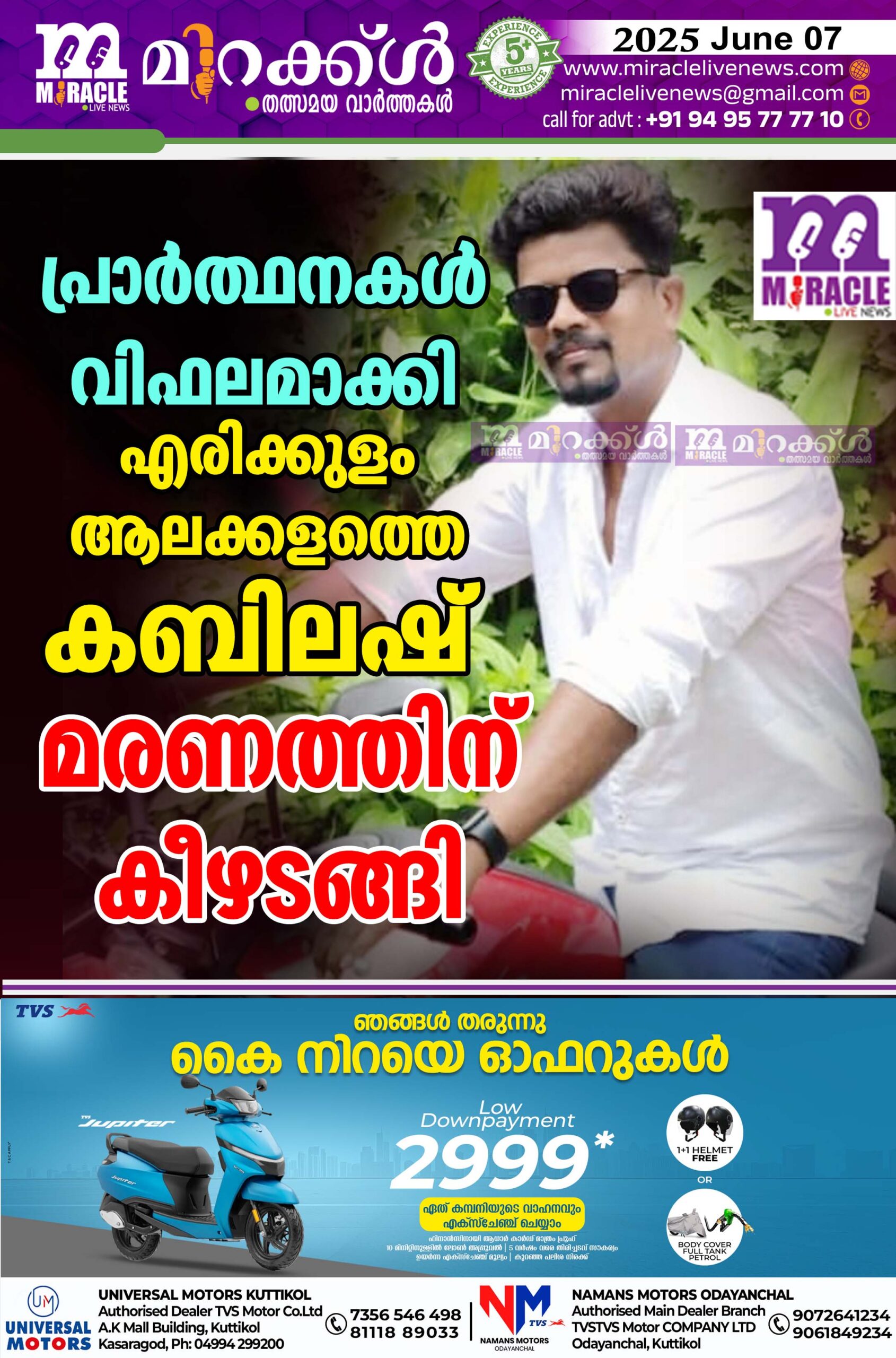 മടിക്കൈ: ചികിത്സയ്ക്കായി നാടൊന്നിച്ചിട്ടും പ്രാര്ത്ഥനകള് വിഫലമാക്കി ഒടുവില് കബിലാഷ് യാത്രയായി. മസ്തിഷ്കാഘാതം സംഭവിച്ച് കണ്ണൂരിലെ സ്വകാര്യ ആശുപത്രിയിലെ തീവ്രപരിചരണ വിഭാഗത്തില് ചികില്സയിലായിരുന്ന മടിക്കൈ എരിക്കുളം ആലക്കളത്തെ കബിലാഷ്(36)