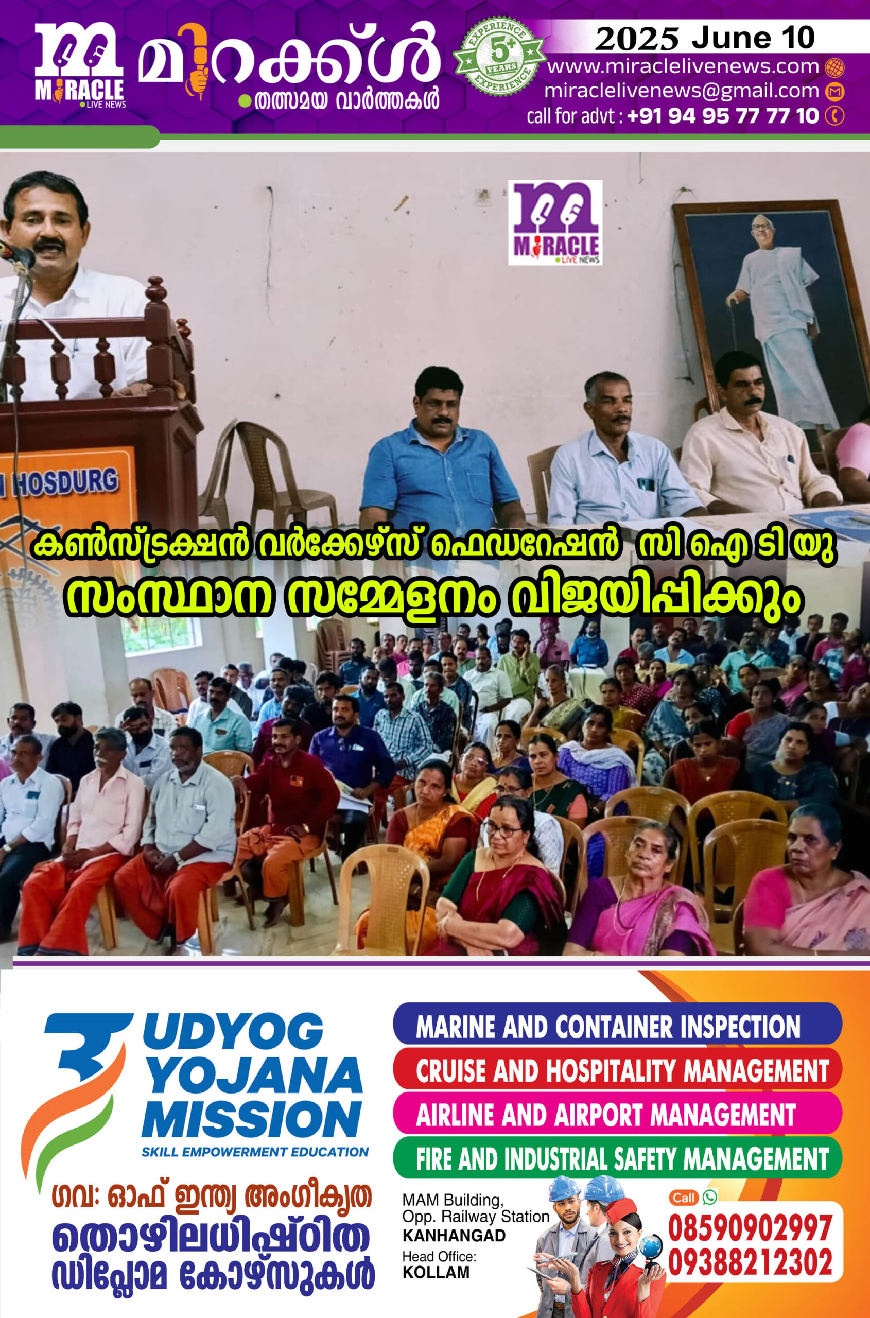 കണ്സ്ട്രക്ഷന് വര്ക്കേഴ്സ് ഫെഡറേഷന് സി ഐ ടി യു സംസ്ഥാന സമ്മേളനം വിജയിപ്പിക്കും
