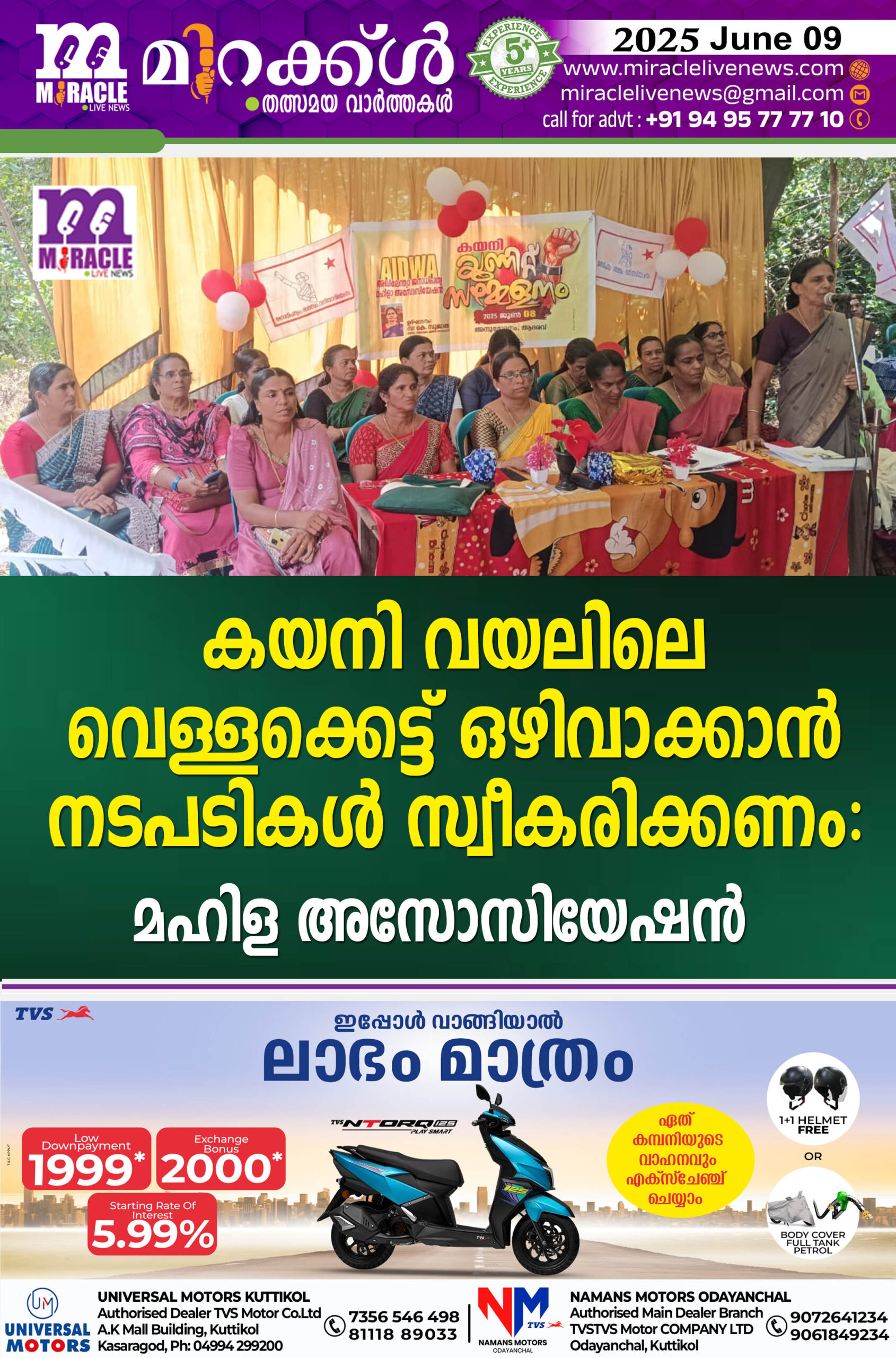 കയനി വയലിലെ വെള്ളക്കെട്ട് ഒഴിവാക്കാന്‍ നടപടികള്‍ സ്വീകരിക്കണം: മഹിള അസോസിയേഷന്‍