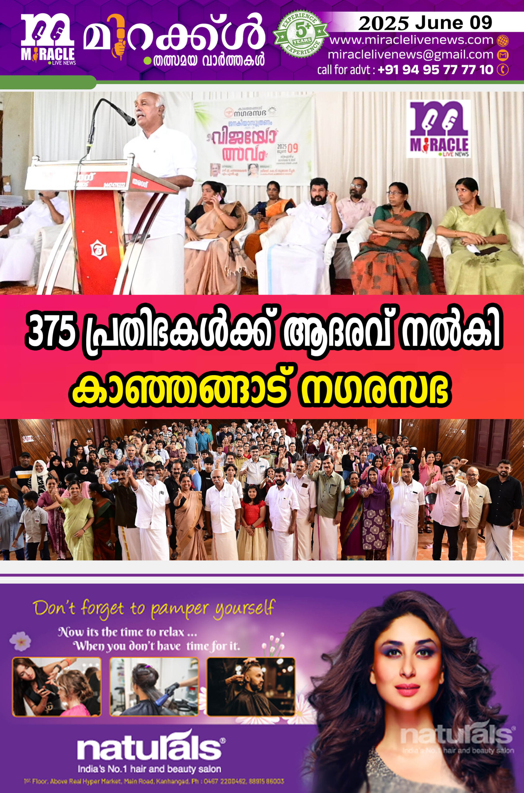 375 പ്രതിഭകള്ക്ക് ആദരവ് നല്കി കാഞ്ഞങ്ങാട് നഗരസഭ