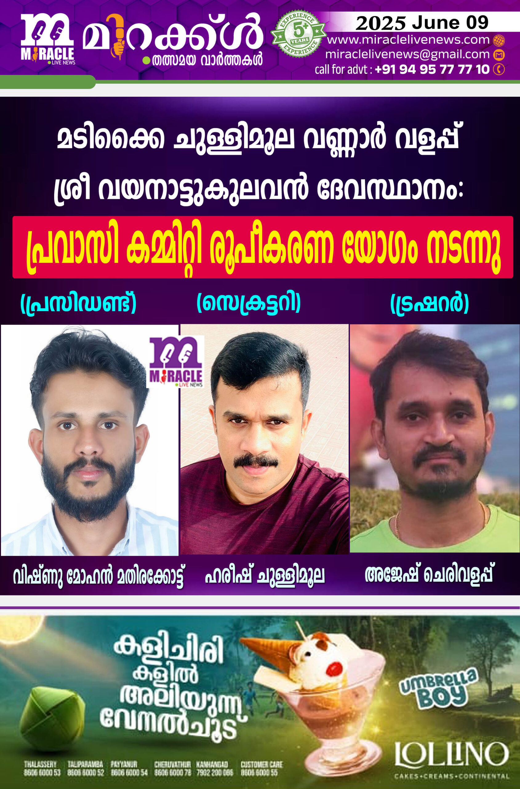 ഷാര്‍ജ :മടിക്കൈ ചുള്ളിമൂല വണ്ണാര്‍ വളപ്പ് ശ്രീ വയനാട്ടുകുലവന്‍ ദേവസ്ഥാനം പുനരുദ്ധാരണത്തിന്റെ ഭാഗമായി പ്രവാസി കമ്മിറ്റി രൂപീകരണ യോഗം ഷാര്‍ജ റുവി അപ്പാര്‍ട്‌മെന്റ് വെച്ച് നടന്നു. ഹരീഷ് ചുള്ളിമൂല സ്വാഗതം പറഞ്ഞു. വിഷ്ണു മോഹന്‍ അധ്യക്ഷത വഹിച്ചു. രാമകൃഷ്ണന്‍, മണികണ്ഠന്‍, ചന്ദ്രന്‍ കാട്ടാമ്പള്ളി, ബാബു മതിരക്കോട്ട്, രവി, മധു, ബാബു കൊക്കോട്ട്, വിനോദ് എന്‍. പി, കൃഷ്ണന്‍, വിനോദ് കാണോത്ത് എന്നിവര്‍ സംസാരിച്ചു. യോഗത്തില്‍ 34 അംഗ എക്‌സിക്യൂട്ടീവ് കമ്മിറ്റിയെ തെരെഞ്ഞെടുത്തു. തുടര്‍ന്ന് പുതിയ ഭാരവാഹികളെ തിരെഞ്ഞെടുത്തു. രാമകൃഷ്ണന്‍, എം. കെ ദിവാകരന്‍,എന്‍. പി ചന്ദ്രന്‍ തലക്കാനം, മണികണ്ഠന്‍ നായര്‍, ബാബു മതിരക്കോട്ട് (രക്ഷാധികാരികള്‍ ), വിഷ്ണു മോഹന്‍ മതിരക്കോട്ട് (പ്രസിഡന്റ് ),തങ്കരാജന്‍ (വൈസ് പ്രസിഡന്റ്), ഹരീഷ് ചുള്ളിമൂല (സെക്രട്ടറി),ദിനേശന്‍ മാടം (ജോയിന്റ് സെക്രട്ടറി), അജേഷ് ചെരിവളപ്പ് (ട്രഷറര്‍), വിനോദ് കാണോത്ത് (ജോയിന്റ്ട്രഷറര്‍).