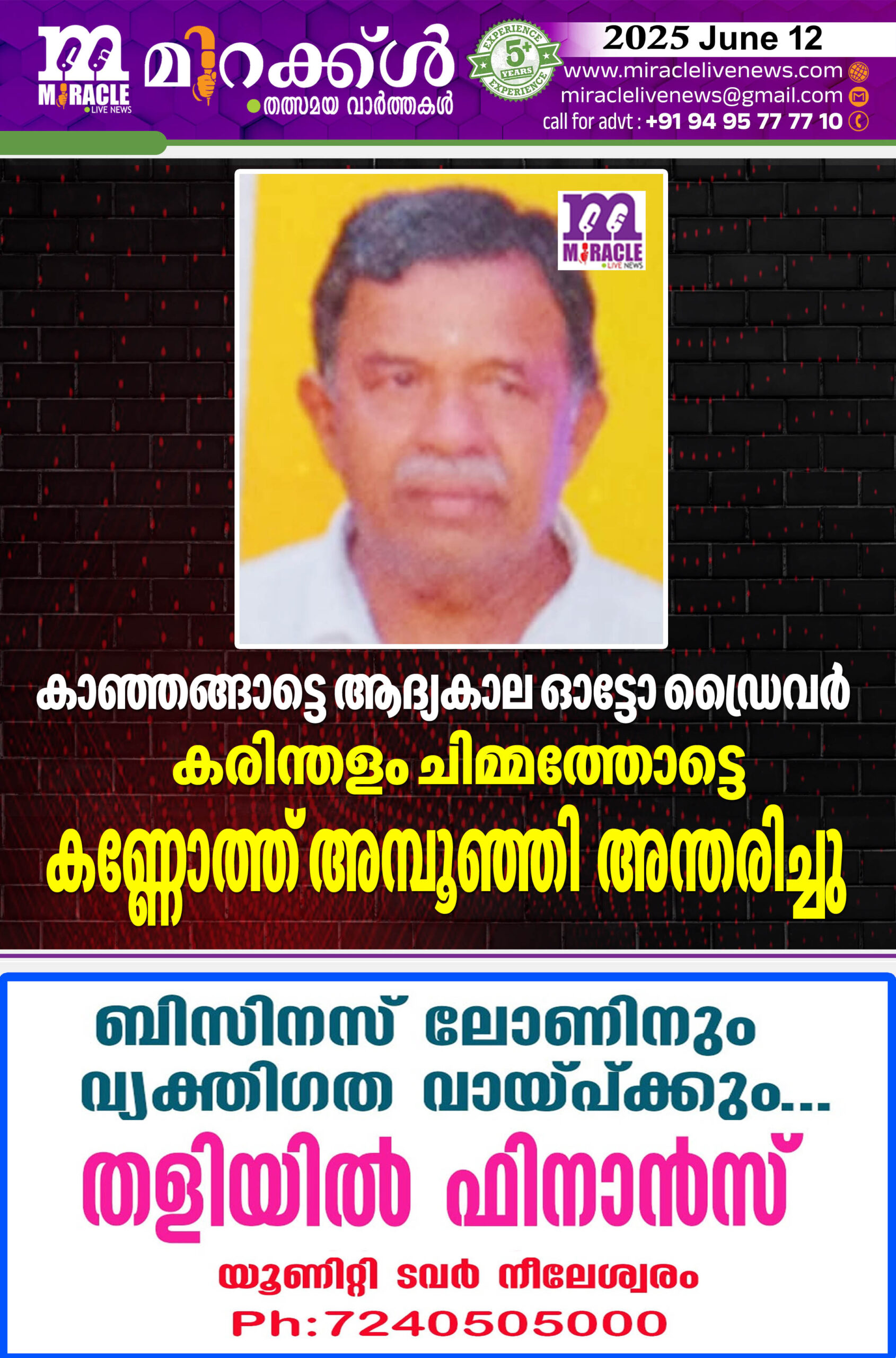 കാഞ്ഞങ്ങാട്ടെ ആദ്യകാല ഓട്ടോ ഡ്രൈവര് കരിന്തളം ചിമ്മത്തോട്ടെ കണ്ണോത്ത് അമ്പൂഞ്ഞി അന്തരിച്ചു