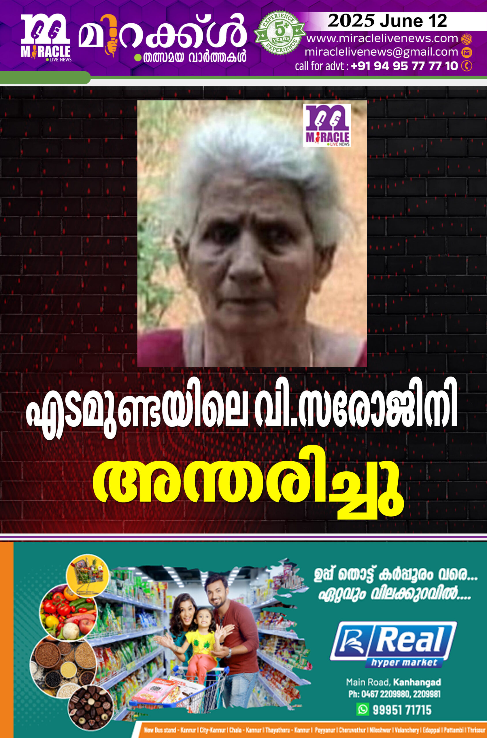 എടമുണ്ടയിലെ വി.സരോജിനി അന്തരിച്ചു