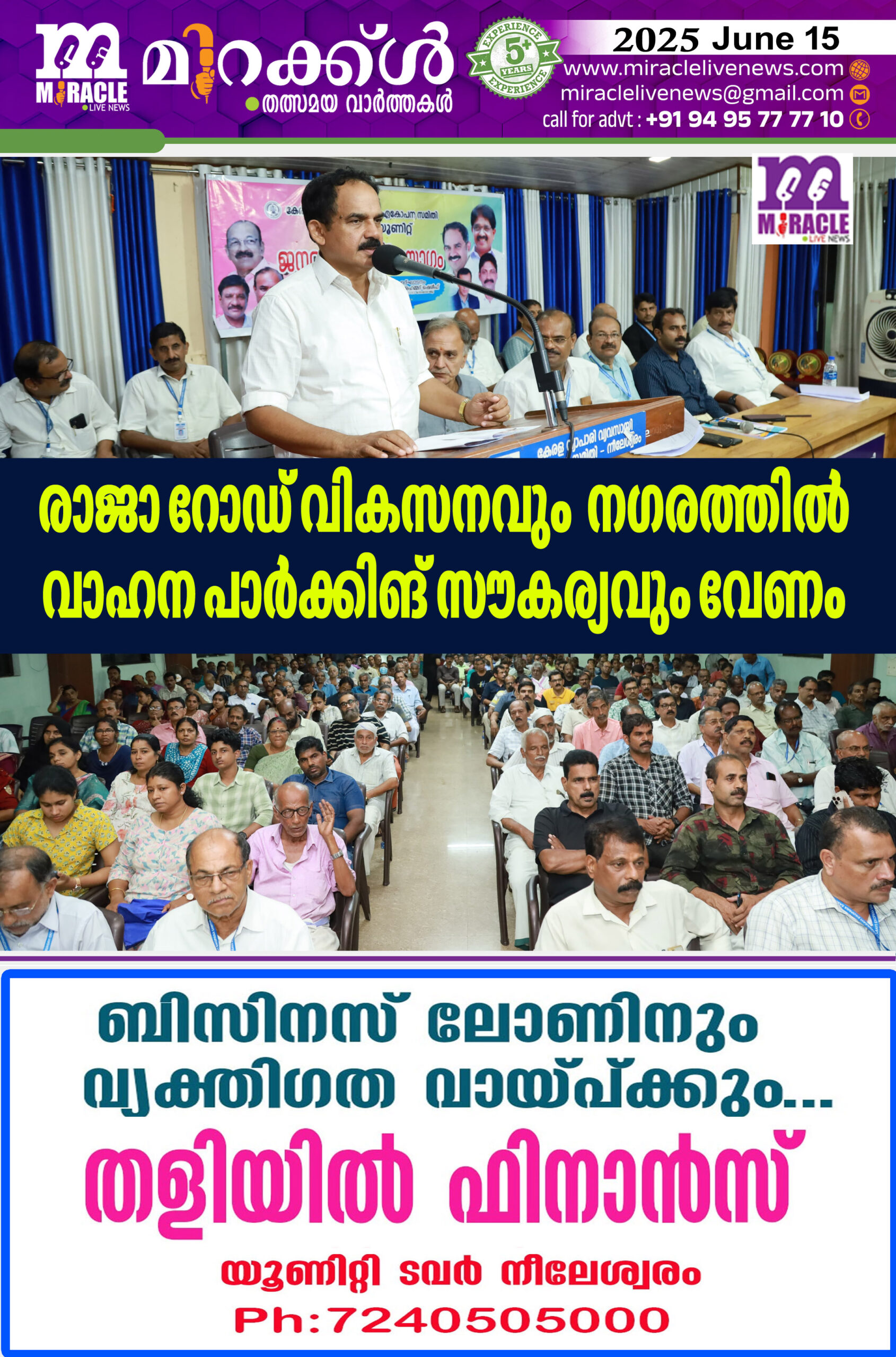 രാജാ റോഡ് വികസനവും നഗരത്തില് വാഹന പാര്ക്കിങ് സൗകര്യവും വേണം