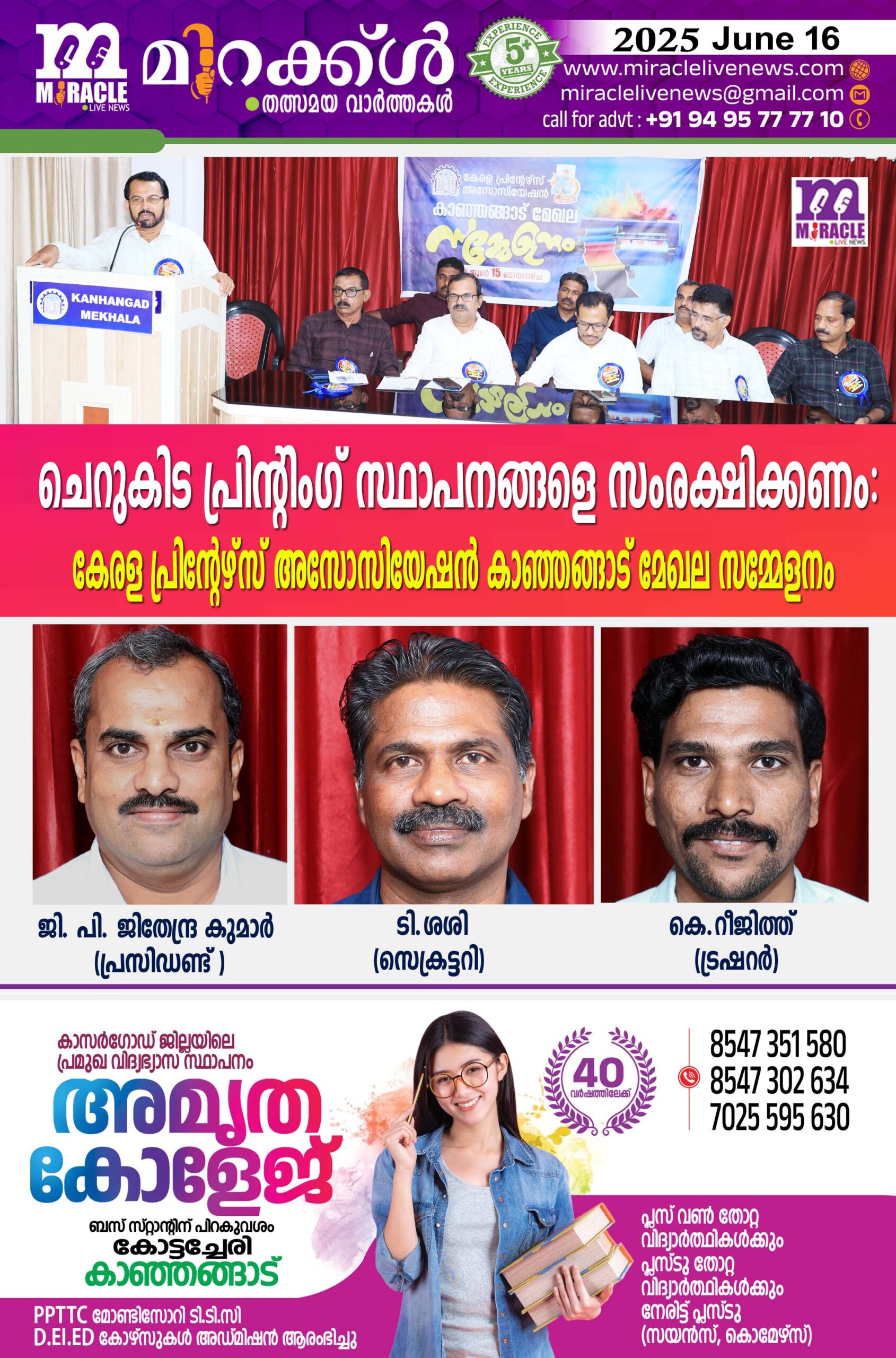 കാഞ്ഞങ്ങാട്: നൂതന സാങ്കേതിക വിദ്യകളും അത്യാധുനിക യന്ത്ര സംവിധാനങ്ങളും അച്ചടി മേഖലയിലേക്ക് കടന്നു വന്നതോടെ വലിയ സാമ്പത്തിക ബാധ്യതകള് ചെറുകിട പ്രിന്റിംഗ് സ്ഥാപനങ്ങള്ക്ക് നേരിടേണ്ടി വരുന്നതായും ചെറുകിട പ്രിന്റിംഗ് സ്ഥാപനങ്ങളെ സംരക്ഷിക്കാന് സര്ക്കാര് മുന്നോട്ട് വരണമെന്നും കേരള പ്രിന്റേഴ്സ് അസോസിയേഷന് കാഞ്ഞങ്ങാട് മേഖല സമ്മേളനം പ്രമേയത്തിലൂടെ ആവശ്യപ്പെട്ടു .തകര്ച്ചയുടെ വക്കിലായ മേഖലയുടെ നിലനില്പ്പിനായി സര്ക്കാര് അടിയന്തരമായി ഇടപെടണമെന്നും സമ്മേളനം ആവശ്യപ്പെട്ടു.കാഞ്ഞങ്ങാട് വെച്ച് നടന്ന മേഖല സമ്മേളനം ജില്ലാ പ്രസിഡണ്ട് ടി.പി. അശോക് കുമാര് ഉദ്ഘാടനം ചെയ്തു സംസ്ഥാന വൈസ് പ്രസിഡണ്ട് മുജീബ് അഹമ്മദ് മുഖ്യാതിഥിയായി സംസാരിച്ചു. മേഖല പ്രസിഡണ്ട് എം. ജയറാം അധ്യക്ഷത വഹിച്ചു. കെ. പി. എ കൈത്താങ്ങ് പദ്ധതി ചെയര്മാന് സിബി കൊടിയം കുന്നേല്,പ്രഭാകരന് കാഞ്ഞങ്ങാട്, മേഖലാ സെക്രട്ടറി ജി. പി.ജിതേന്ദ്ര കുമാര്, ഷംസീര്. ബി, റീജിത്ത് കെ, രാജേഷ് കെ.എന്നിവര് സംസാരിച്ചു. സ്വാഗതസംഘം ചെയര്മാന് എന്. കേളു നമ്പ്യാര് സ്വാഗതവും കെ. രാജേഷ് നന്ദിയും പറഞ്ഞു.
