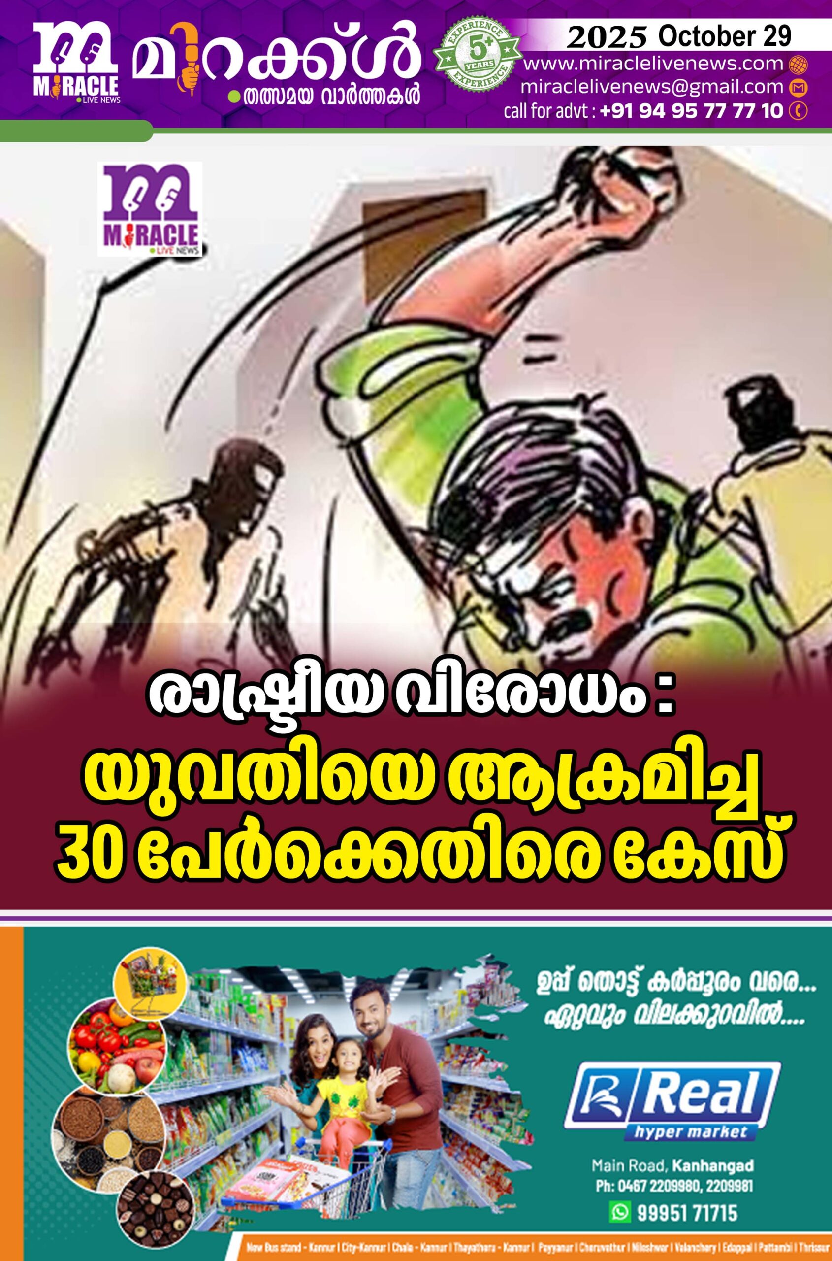 രാഷ്ട്രീയ വിരോധം : യുവതിയെ ആക്രമിച്ച 30 പേര്‍ക്കെതിരെ കേസ്