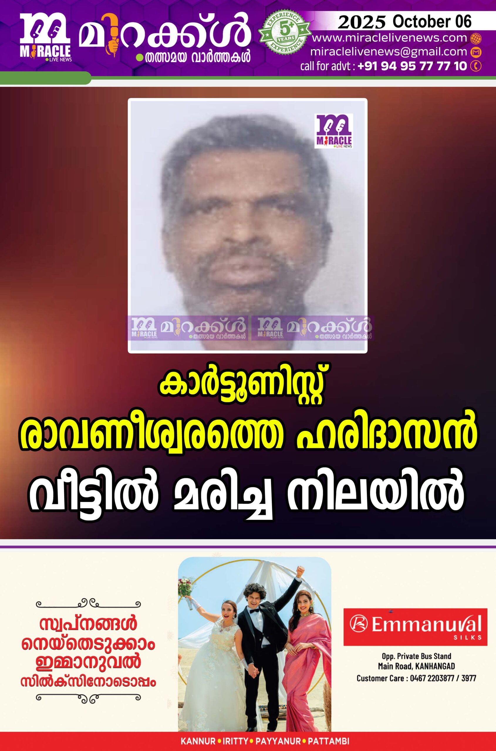 കാര്ട്ടൂണിസ്റ്റ് രാവണീശ്വരത്തെ ഹരിദാസന് വീട്ടില് മരിച്ച നിലയില്