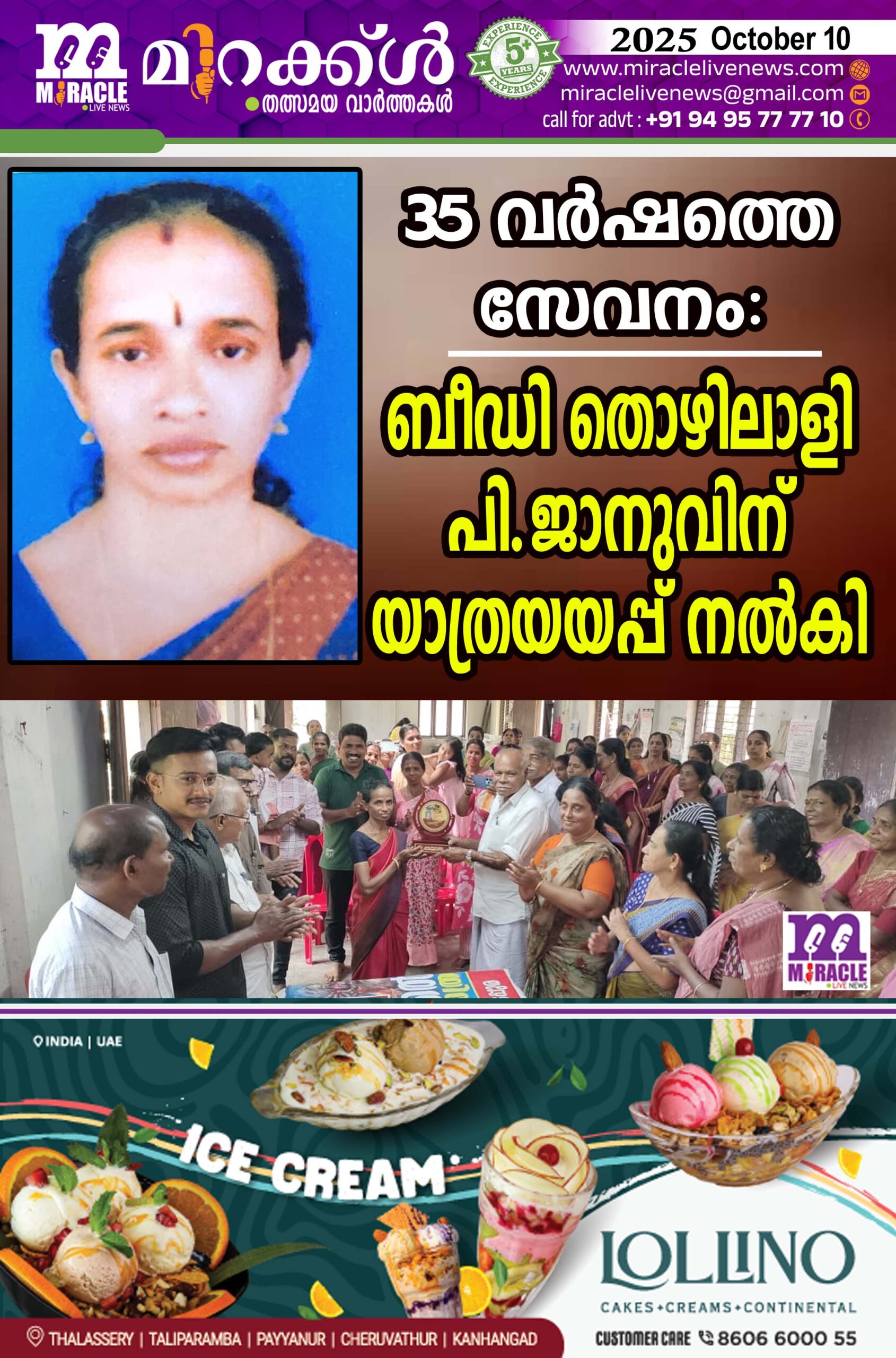 35 വര്ഷത്തെ സേവനം: ബീഡി തൊഴിലാളി പി.ജാനുവിന് യാത്രയയപ്പ് നല്കി