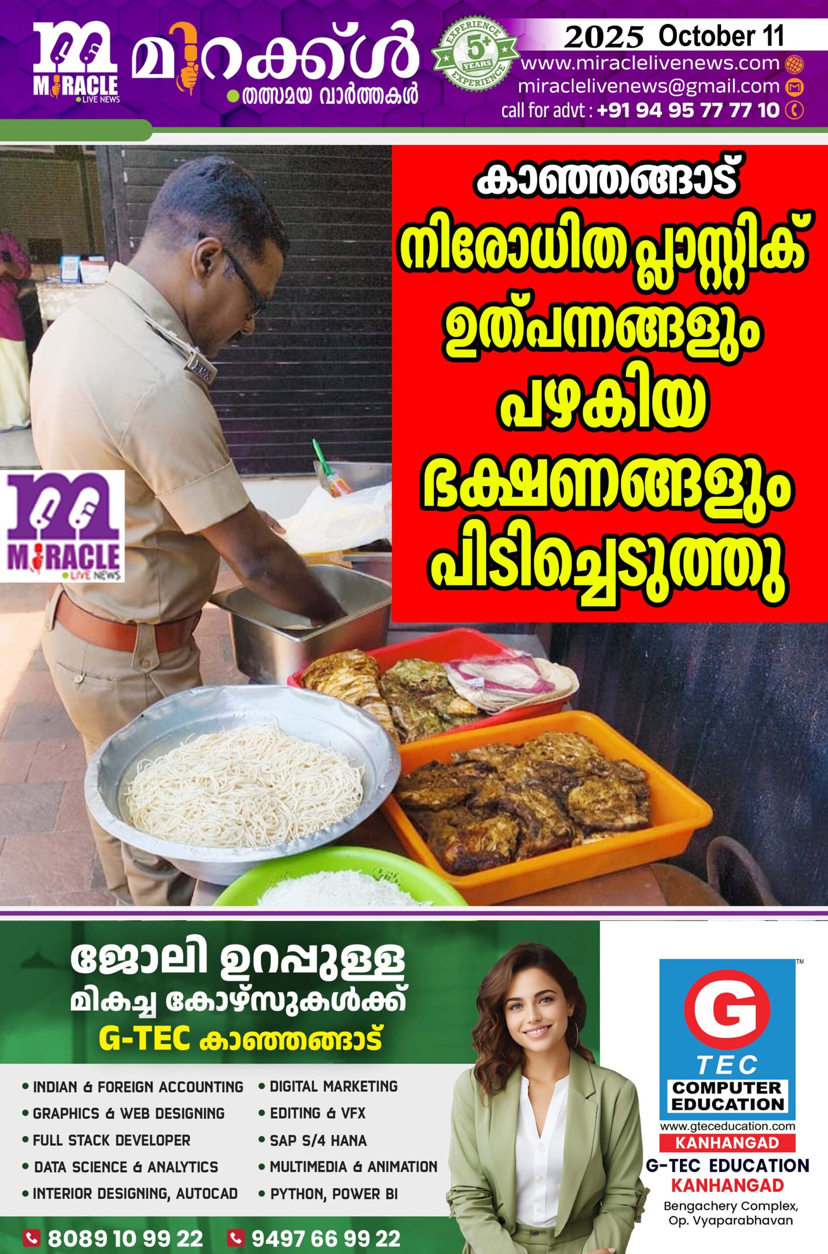 കാഞ്ഞങ്ങാട് നിരോധിത പ്ലാസ്റ്റിക് ഉത്പന്നങ്ങളും പഴകിയ ഭക്ഷണങ്ങളും പിടിച്ചെടുത്തു