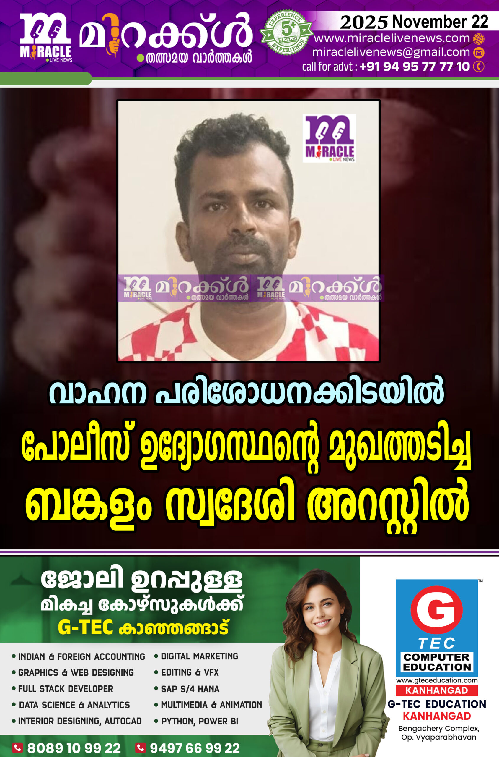 വാഹന പരിശോധനക്കിടയില്‍ പോലീസ് ഉദ്യോഗസ്ഥന്റെ മുഖത്തടിച്ച ബങ്കളം സ്വദേശി അറസ്റ്റില്‍