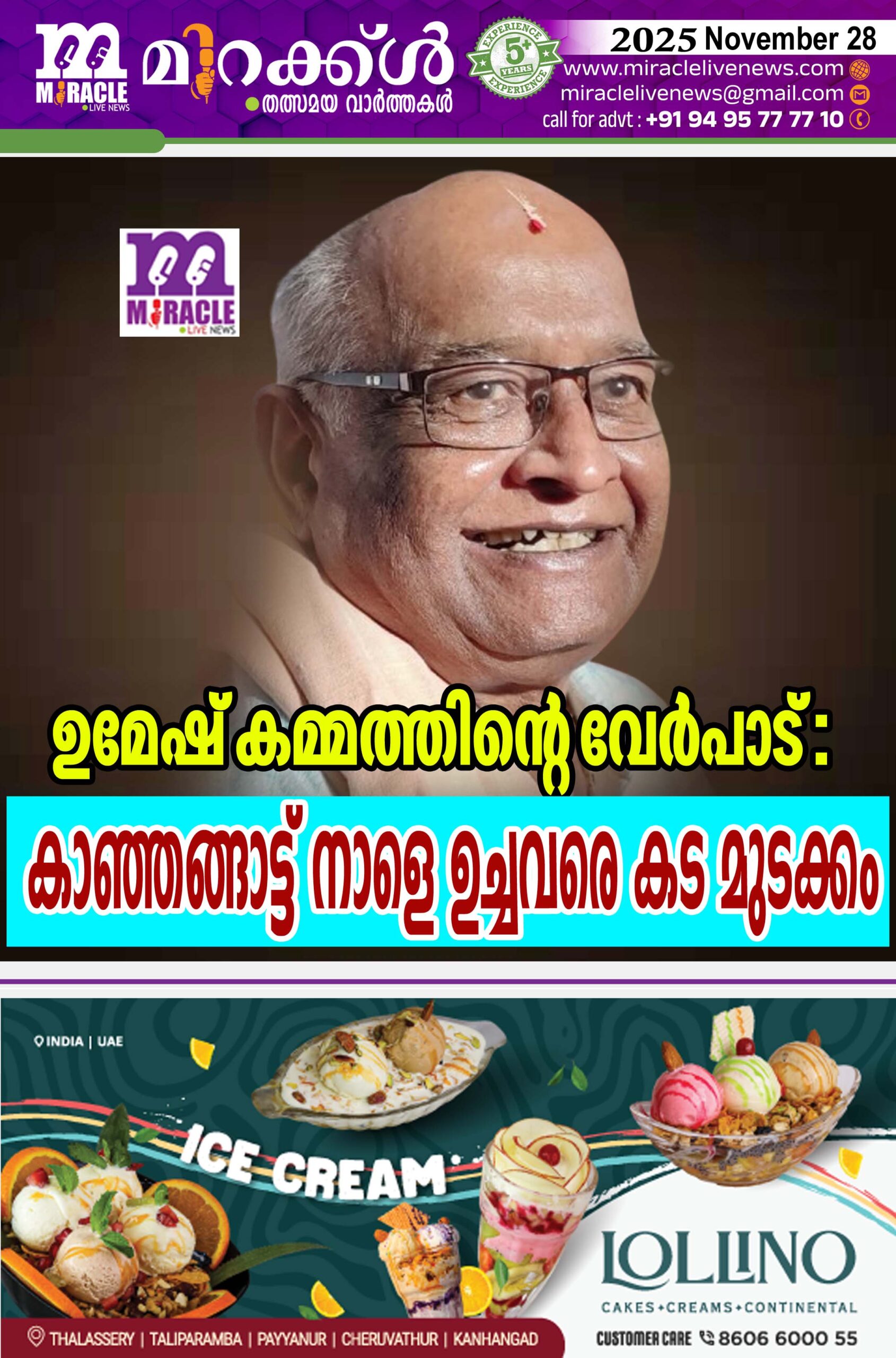 ഉമേഷ് കമ്മത്തിന്റെ വേര്‍പാട് : കാഞ്ഞങ്ങാട്ട് നാളെ ഉച്ചവരെ കട മുടക്കം