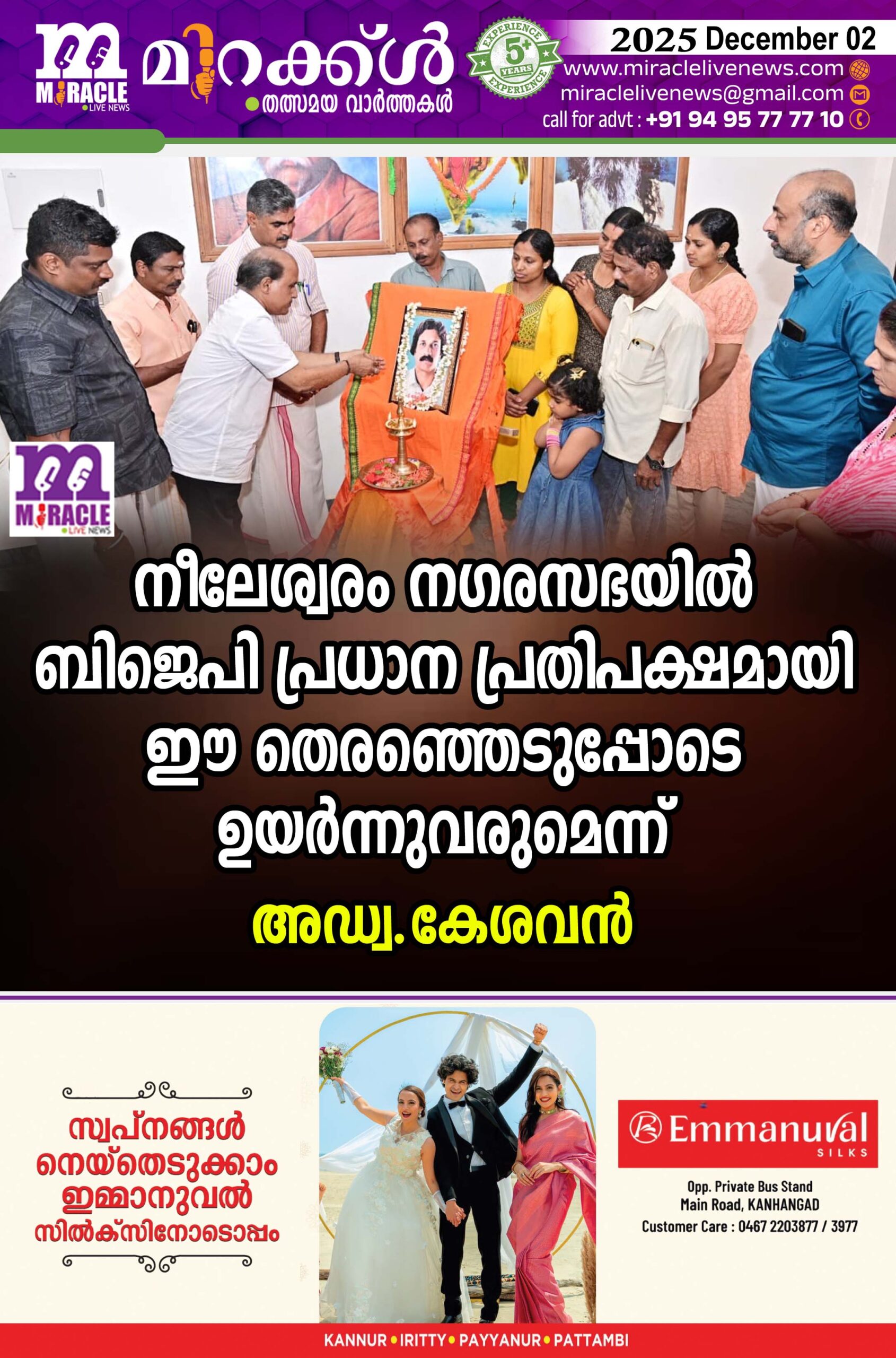 നീലേശ്വരം നഗരസഭയില്‍ ബിജെപി പ്രധാന പ്രതിപക്ഷമായി ഈ തെരഞ്ഞെടുപ്പോടെ ഉയര്‍ന്നുവരുമെന്ന് അഡ്വ. കേശവന്‍