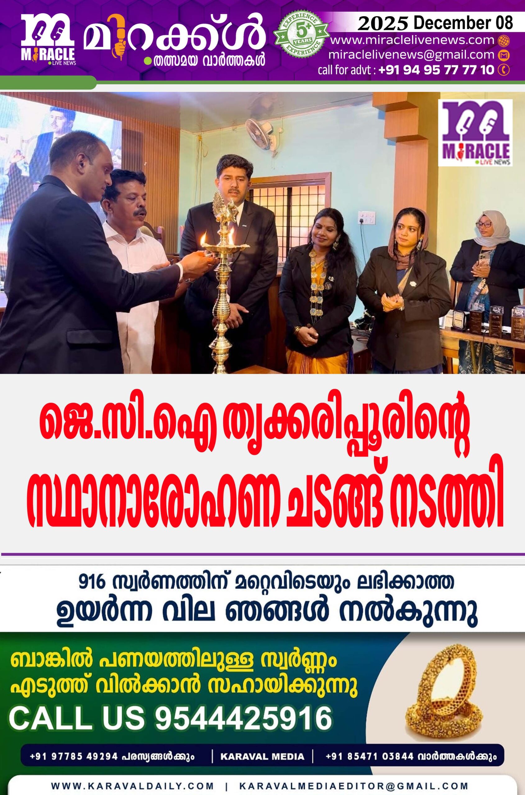 തൃക്കരിപ്പൂര്: ജെ.സി.ഐ തൃക്കരിപ്പൂര് 2026 ലെ ഭാരവാഹികളുടെ സ്ഥാന രോഹണ ചടങ്ങുകള് നടന്നു. തൃക്കരിപ്പൂര് സി.എച്ച് മുഹമ്മദ് കോയ സ്മാരക ടൗണ് ഹാളില് നടന്ന ചടങ്ങില് പ്രശസ്ത എഴുത്തുകാരന് കെ.എന് പ്രശാന്ത് മുഖ്യാതിഥിയായിരുന്നു. ജെ.സി.ഐ എന്നത് പുതിയ തലമുറക്ക് സമൂഹിക പ്രതിബന്ധതയുണ്ടാക്കാന് ഉതുകുന്ന യുവ പ്രസ്ഥാനമാ ണെന്ന് എഴുത്തുകാരന് കെ.എന് പ്രശാന്ത് ഓര്മ പ്പെടുത്തി. ജെ.സി.ഐ 19 മേഖല പ്രസിഡന്റ് അരുണ് പ്രഭു വിശിഷ്ടാതിഥിയായി. പ്രോഗ്രാം ഡയരക്ടര് ഫസലുറഹ്മാന് ഏ.എം സ്വാഗതം പറഞ്ഞു. ജെ.സി.ഐ 19 മേഖല വൈസ് പ്രസിഡന്റ് സന്ദീപ് ഷേണായി, തൃക്കരിപ്പര് ചാപ്റ്റര് പ്രസിഡന്റ് രേഷ്മ വിജു, സെക്രട്ടറി ഷഹാന, പുതുതായി തിര ഞ്ഞെടുക്ക പ്പെട്ട പ്രസിഡന്റ് ഫലാഹ് അബ്ദുല് സലാം, സെക്രട്ടറി അഖ്ദസ് അബൂബക്കര്, ട്രഷറര് അനൂപ്പ് പ്രസംഗിച്ചു. ജെ.സിഐ ആദ്യ ത്തെ സ്റ്റാര് പ്രസിഡന്റിനുള്ള അവാര്ഡ് നേടിയ രേഷ്മ വിജുവി നെ മുന് തൃക്കരിപ്പൂര് ചാപ്റ്റര് പ്രസിഡന്റുമാര് ഉപഹാരം നല്കി ആദരിച്ചു.