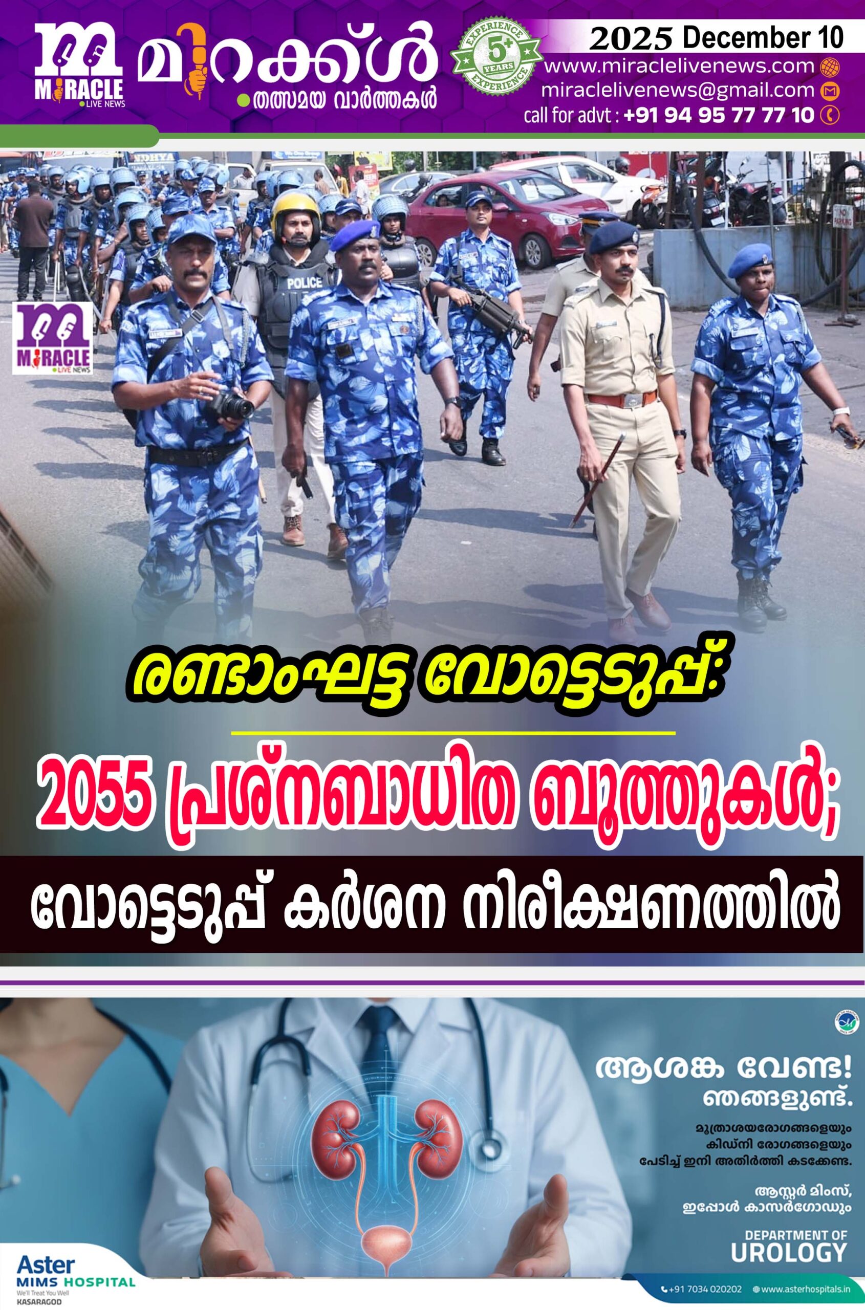 രണ്ടാംഘട്ട തിരഞ്ഞെടുപ്പില് ആകെ 18274 പോളിങ് സ്റ്റേഷനുകളാണുളളത്. ഇതില് 2055 എണ്ണം പ്രശ്നബാധിത ബൂത്തുകളായി റിപ്പോര്ട്ട് ചെയ്തിട്ടുണ്ട്. തൃശൂര്- 81, പാലക്കാട്- 180, മലപ്പുറം- 295, കോഴിക്കോട്- 166, വയനാട്- 189, കണ്ണൂര്- 1025 , കാസര്ഗോഡ്- 119 എന്നിങ്ങനെയാണ് പ്രശ്ന ബാധിത ബൂത്തുകളുടെ ജില്ല തിരിച്ചുള്ള എണ്ണം. ഈ ബൂത്തുകളില് അതീവ സുരക്ഷാക്രമീകരണങ്ങളും വെബ്കാസ്റ്റിംഗ് സംവിധാനങ്ങളും ഒരുക്കിയിട്ടുണ്ട്. കൂടാതെ അധിക പോലീസ് സുരക്ഷയും ഏര്പ്പെടുത്തിയിട്ടുണ്ട്. പ്രശ്നബാധിത ബൂത്തുകളിലെ വോട്ടെടുപ്പ് പ്രക്രിയ പൂര്ണ്ണമായും സംസ്ഥാന തിരഞ്ഞെടുപ്പ് കമ്മീഷന്റെ നേരിട്ടുള്ള നിരീക്ഷണത്തിലായിരിക്കും. ഇതോടൊപ്പം അതത് ജില്ലാ കളക്ടറേറ്റുകളില് സജ്ജീകരിച്ചിട്ടുള്ള കണ്ട്രോള് റൂമുകളിലും പ്രശ്നബാധിത ബൂത്തുകളില് ഏര്പ്പെടുത്തിയ ലൈവ് വെബ്കാസ്റ്റിങിലൂടെ നിരീക്ഷിക്കും. സിറ്റി പോലീസ് കമ്മീഷനര്മാരുടെയും ജില്ലാ പോലീസ് മേധാവികളുടെയും നേതൃത്വത്തിലാണ് ജില്ലകളില് നിരീക്ഷണം നടത്തുന്നത്.