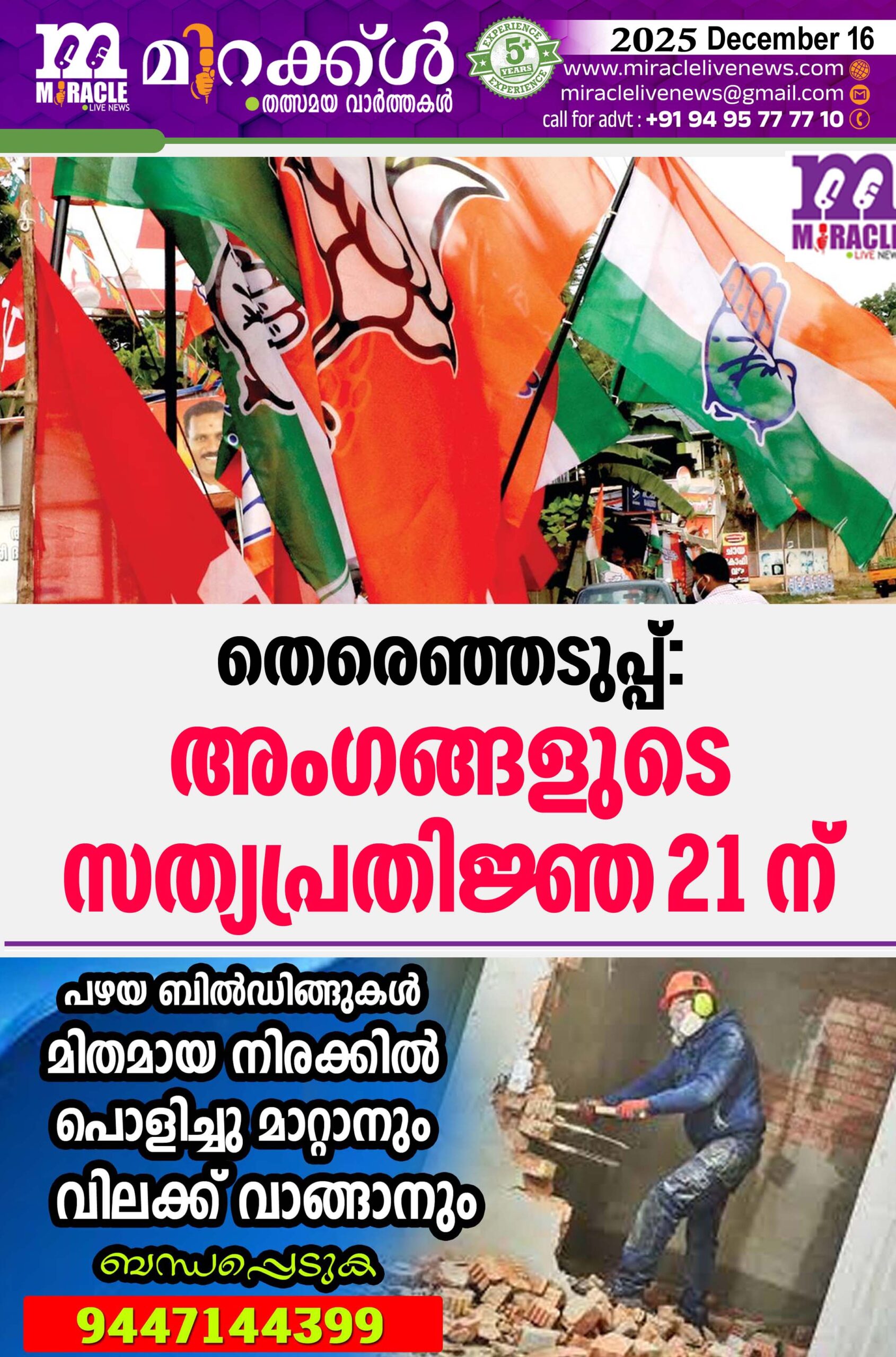 തിരുവനന്തപുരം: തദ്ദേശസ്വയംഭരണ സ്ഥാപനങ്ങളിലേക്ക് തിരഞ്ഞെടുക്കപ്പെട്ട അംഗങ്ങള് ഡിസംബര് 21 ന് സത്യപ്രതിജ്ഞ/ ദൃഢപ്രതിജ്ഞ ചെയ്ത് അധികാരമേല്ക്കുമെന്ന് സംസ്ഥാന തിരഞ്ഞെടുപ്പ് കമ്മീഷണര് എ ഷാജഹാന് അറിയിച്ചു. ഇത് സംബന്ധിച്ച മാര്ഗ്ഗ നിര്ദ്ദേശങ്ങള് കമ്മീഷന് പുറപ്പെടുവിച്ചിട്ടുണ്ട്. തിരഞ്ഞെടുക്കപ്പെട്ടവരില് മുതിര്ന്ന അംഗം / കൗണ്സിലര് വേണം ആദ്യം സത്യപ്രതിജ്ഞയോ ദൃഢ പ്രതിജ്ഞയോ ചെയ്യേണ്ടത്. സര്ക്കാര് ഇതിലേയ്ക്ക് ചുമതലപ്പെടുത്തിയിട്ടുള്ള ഉദ്യോഗസ്ഥര് മുന്പാകെ വേണം ആദ്യ അംഗം പ്രതിജ്ഞയെടുക്കേണ്ടത്. കോര്പ്പറേഷനുകളിലും ജില്ലാപഞ്ചായത്തുകളിലും ജില്ലാകളക്ടര്മാരും, ഗ്രാമ, ബ്ലോക്ക് പഞ്ചായത്തുകളില് അതത് സ്ഥാപനങ്ങളിലെ വരണാധികാരികളെയുമാണ്ഇതിനായിചുമതലപ്പെടുത്തിയിട്ടുള്ളത്. മുനിസിപ്പല് കൗണ്സിലുകളില് ഇതിനായി നിയോഗിച്ചിട്ടുള്ള വരണാധികാരികള് വേണം ആദ്യ അംഗത്തെ പ്രതിജ്ഞ എടുപ്പിക്കേണ്ടത്.