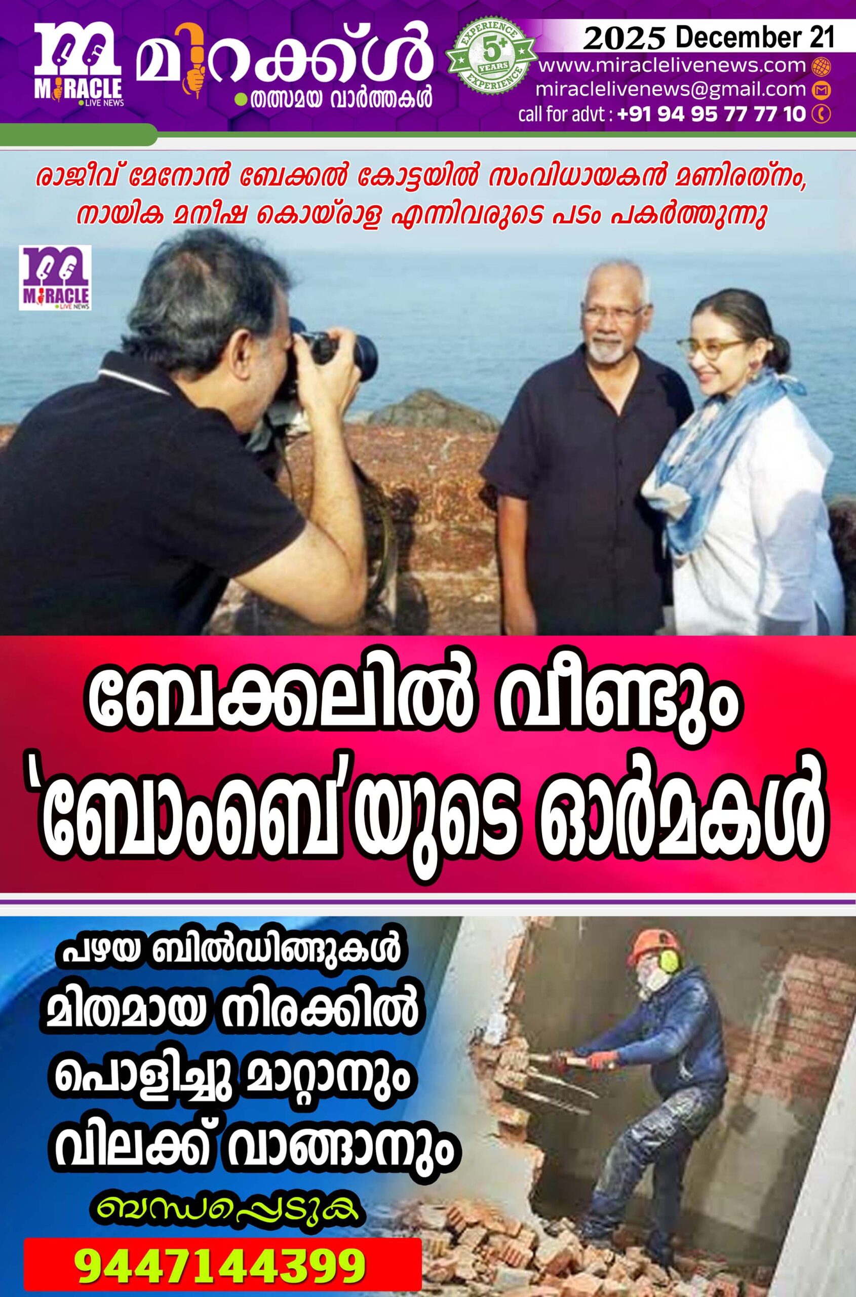 ബേക്കല്: മനീഷ കൊയ്രാള ഒരു നിമിഷം ഷൈല ബാനുവാകുന്ന കാഴ്ച… ആക്ഷനും കട്ടിനുമിടയിലുള്ള ഏടുകള് ഓര്ത്തെടു ത്ത് സംവിധായകന് മണി രത്നം… ബേക്കലിന്റെ സൗ ന്ദര്യം ആദ്യമായി കാണുന്ന കുട്ടിയെപ്പോലെ നോക്കിയി രിക്കുന്ന രാജീവ് മേനോന്…. എക്കാലത്തെയും മികച്ച ചലച്ചിത്രങ്ങളില് ഒന്നായ ‘ബോംബെ’യുടെ ഓര്മകള് വീണ്ടും തിരയടിച്ച് ബേക്ക ലിനെ തഴുകുന്നു. മുപ്പത് വര്ഷങ്ങള്ക്ക് മുന്പ് ഷൈ ലാ ബാനുവും ശേഖറും പ്രണയിച്ചു നടന്ന ബേക്കലിന്റെ മണ്ണിലേക്ക് ആ പ്രണ യകാവ്യത്തിന്റെ ശില്പികള് വീണ്ടും എത്തി.ഇന്ത്യന് സിനിമാചരിത്ര ത്തിലെ നാഴികക്കല്ലായ ‘ബോംബെ’ എന്ന ചിത്രത്തി ന്റെ മുപ്പതാം വാര്ഷികത്തോ ടനുബന്ധിച്ചാണ് സംവിധായകന് മണിരത്നം, നായിക മനീഷ കൊയ്രാള, ഛായാഗ്രാഹകന് രാജീവ് മേനോന് എ ന്നിവര് പഴയ ഓര്മകള് പു തുക്കാന് ബേക്കല് കോട്ടയിലെത്തിയത്. നാല് ദിവസം തുടര്ച്ചയായി പെയ്യുന്ന മഴ. ഷൂട്ടിങ് നിര്ത്തിവെച്ച് പോകേണ്ട അവസ്ഥ ഉണ്ടാകുമോ എന്ന് ആശങ്കപ്പെട്ടി രുന്നപ്പോള് പെട്ടെന്ന് മഴ കുറഞ്ഞു. ആ സമയത്ത് ബേ ക്കലിലേക്ക് നീട്ടിവെച്ച ക്യാമറയില് പതിഞ്ഞ ദൃശ്യങ്ങളാണ് ഉയിരേ ഉയിരേ… എന്ന ഗാനത്തില് പ്രേക്ഷക