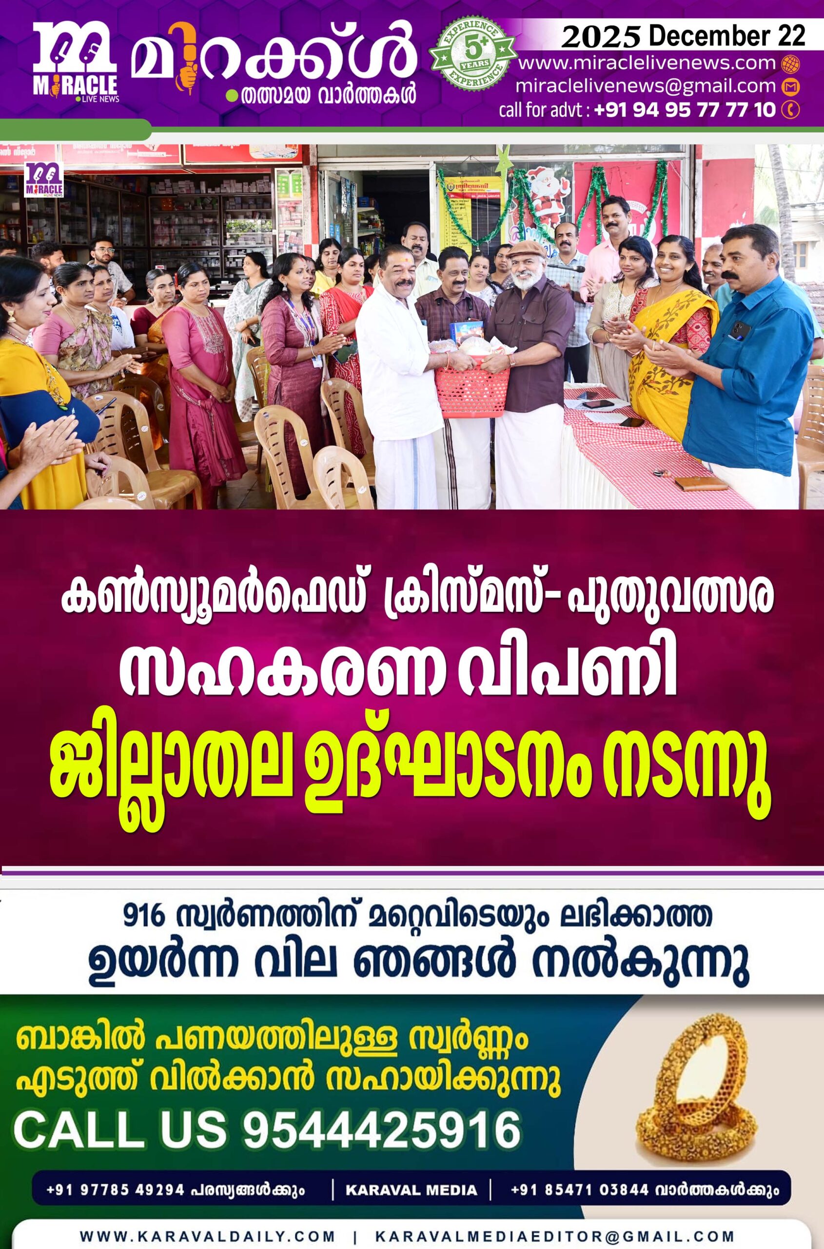 കണ്‍സ്യൂമര്‍ഫെഡ് ക്രിസ്മസ്- പുതുവത്സര സഹകരണ വിപണി ജില്ലാതല ഉദ്ഘാടനം നടന്നു