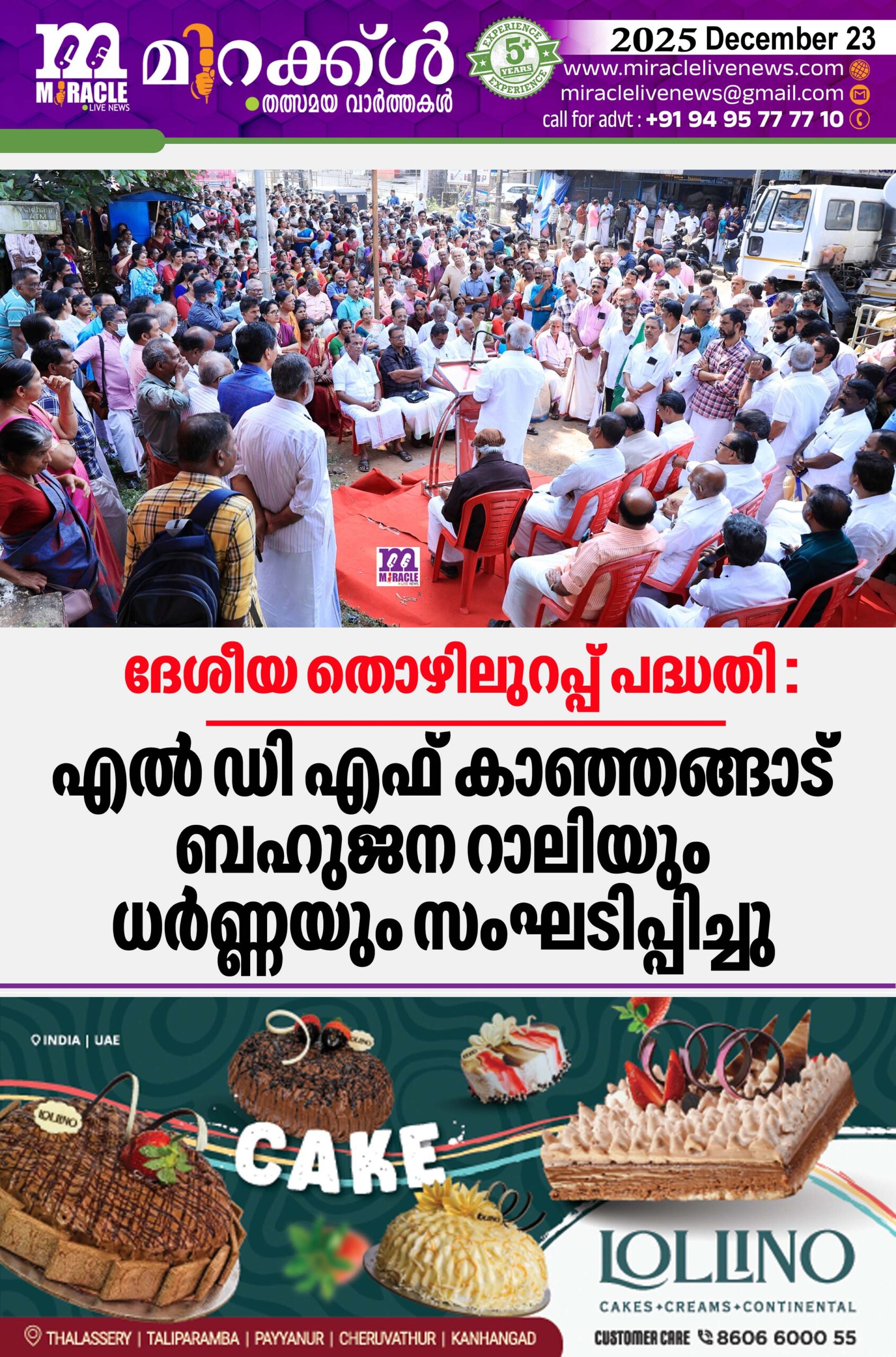 കാഞ്ഞങ്ങാട് : ദേശീയ തൊഴിലുറപ്പ് പദ്ധതി അട്ടിമറിക്കാനുള്ള തീരുമാനത്തിനെതിരെയും പദ്ധതിയുടെ പേരില്‍ നിന്നും മഹാത്മാഗാന്ധിയെ വെട്ടി മാറ്റിയ മോദിയുടെ ബിജെപി ഗവണ്‍മെന്റിന്റെ തീരുമാനത്തിനെതിരെയും എല്‍ഡിഎഫ് കാസര്‍ഗോഡ് ജില്ലാ കമ്മിറ്റിയുടെ നേതൃത്വത്തില്‍ കാഞ്ഞങ്ങാട്ട് ബഹുജന റാലിയും ധര്‍ണ്ണയും സംഘടിപ്പിച്ചു. കോട്ടച്ചേരിയില്‍ നിന്നും ആരംഭിച്ച ബഹുജന റാലി നഗരം ചുറ്റി പുതിയ കോട്ട വഴി പോസ്റ്റ് ഓഫീസ് പരിസരത്ത് സമാപിച്ചു. തുടര്‍ന്ന് നടന്ന സമരം ഇ. ചന്ദ്രശേഖരന്‍ എം.എല്‍.എ ഉദ്ഘാടനം ചെയ്തു. തൊഴിലാളി വര്‍ഗ്ഗത്തിന്റെ ഏറ്റവും അടിത്തട്ടില്‍ കിടക്കുന്ന വിഭാഗത്തിന് ആശ്വാസം നല്‍കുന്ന തൊഴിലുറപ്പ് പദ്ധതിയെ തകര്‍ത്തെറിഞ്ഞ് സമ്പന്ന വര്‍ഗ്ഗ താല്‍പര്യങ്ങള്‍ സംരക്ഷിക്കുന്ന ഫാസിസ്റ്റ് സ്വഭാവമുള്ള മോദിയുടെ നേതൃത്വത്തിലുള്ള ബിജെപി ഗവണ്‍മെന്റിന്റെ തെറ്റായ നയങ്ങളെ ചെറുത്തുനോല്‍പ്പിക്കാന്‍ എല്ലാവരും മുന്നിട്ടിറങ്ങണമെന്ന് എം.എല്‍ എ പറഞ്ഞു. എം. രാജഗോപാലന്‍ എം.എല്‍.എ അധ്യക്ഷത വഹിച്ചു. ഗോവിന്ദന്‍ പള്ളിക്കാപ്പില്‍, സി. പി.ബാബു, വി. വി. രമേശന്‍, കുര്യാക്കോസ് പ്ലാപ്പറമ്പില്‍, സി. ബാലന്‍, പി. പി. രാജു, വി. വി. കൃഷ്ണന്‍, ഹമീദ് ഹാജി, അനന്തന്‍ നമ്പ്യാര്‍, സുരേഷ് പുതിയടത്ത്, രതീഷ് പുതിയപുരയില്‍ എന്നിവര്‍ സംസാരിച്ചു. ബഹുജന മാര്‍ച്ചിലും ധര്‍ണ്ണയിലും നിരവധി പ്രവര്‍ത്തകര്‍ പങ്കെടുത്തു.