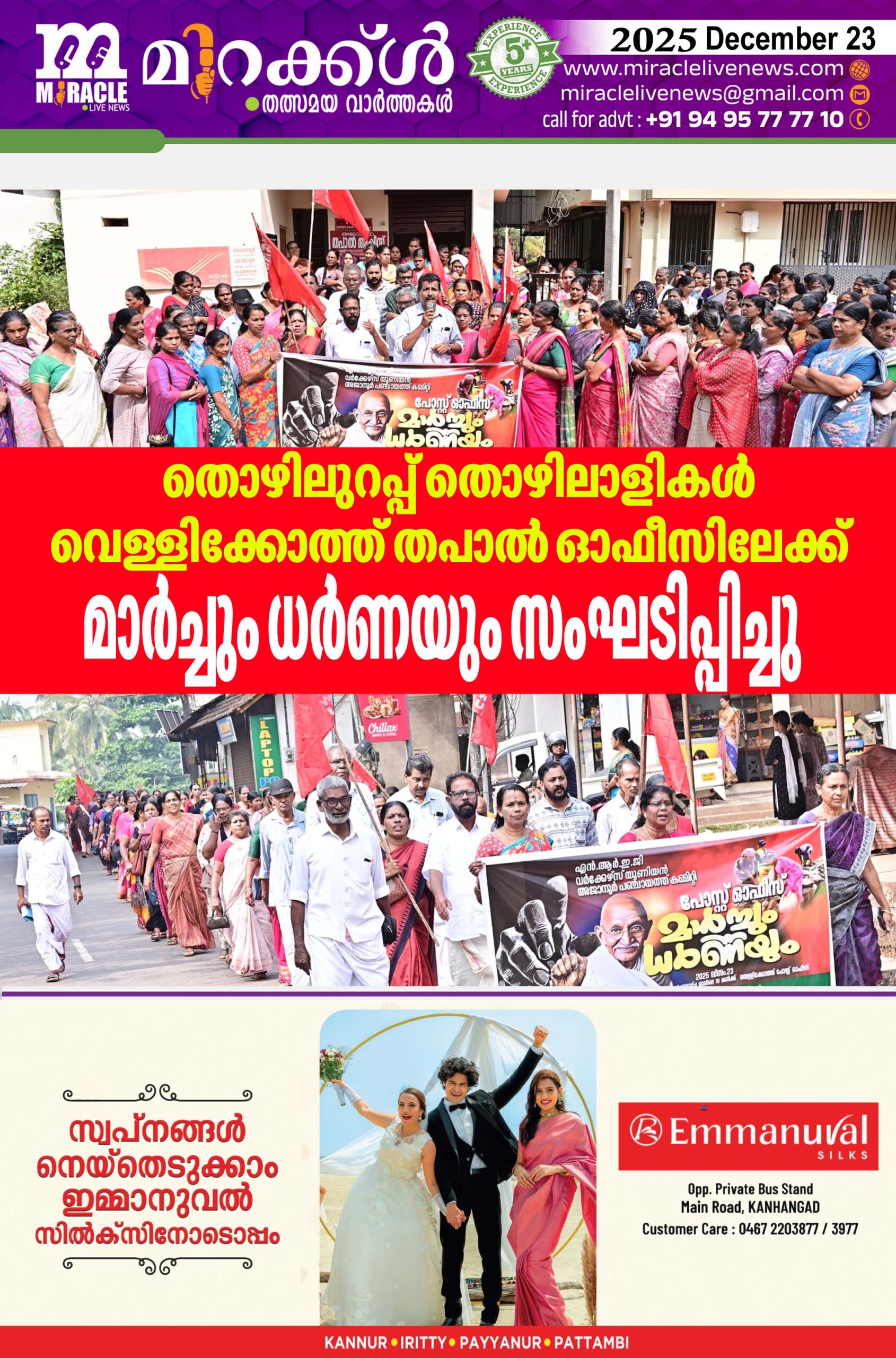 തൊഴിലുറപ്പ് തൊഴിലാളികള്‍ വെള്ളിക്കോത്ത് തപാല്‍ ഓഫീസിലേക്ക് മാര്‍ച്ചും ധര്‍ണയും സംഘടിപ്പിച്ചു.