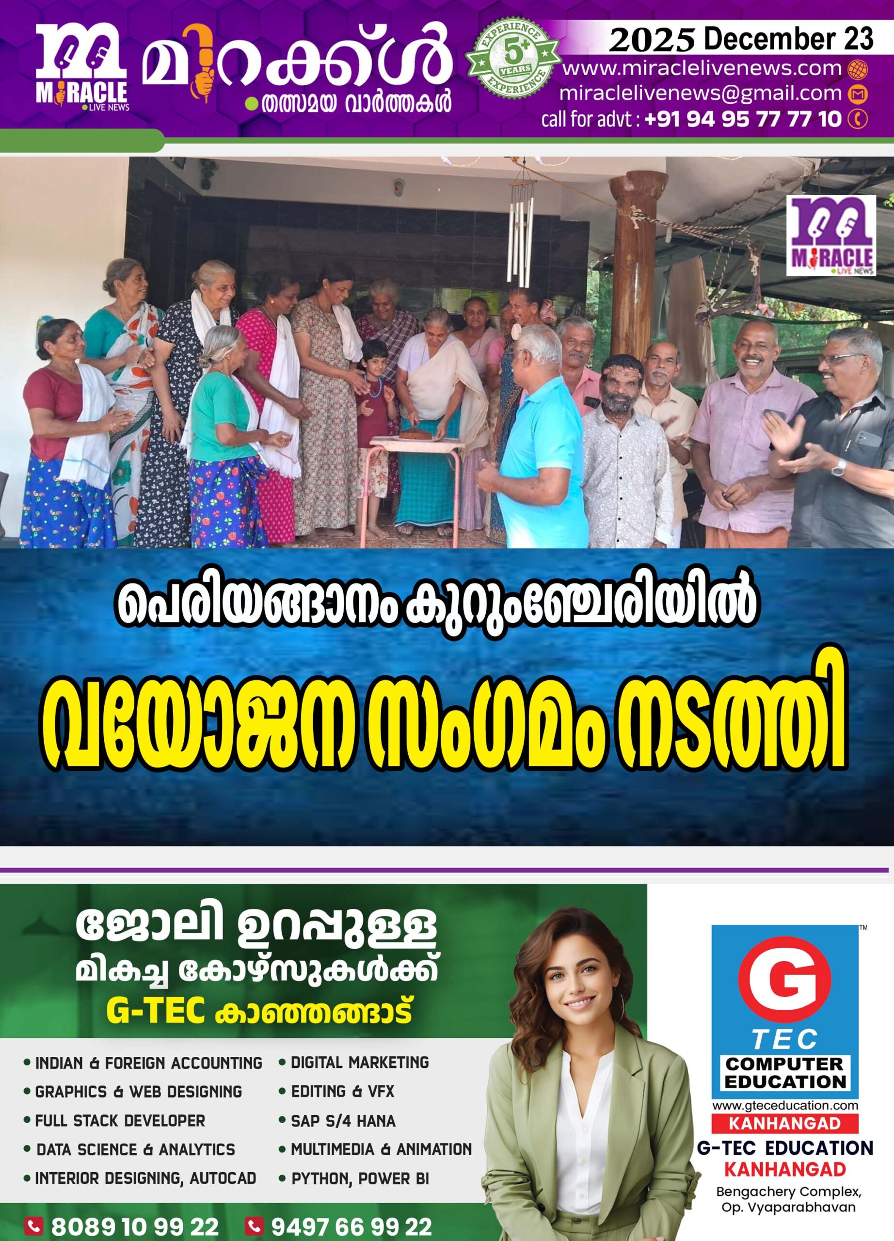 കരിന്തളം: പെരിയങ്ങാനം 12-ാം വാര്ഡ് കുറുംഞ്ചേരിയില് വയോജന സംഗമം നടത്തി. സംഗമത്തില് ഏറ്റവും പ്രായം കൂടിയ ആള് ക്രിസ്മസ് കേക്ക് മുറിച്ചു. എല്ലാമാസവും മുടങ്ങാതെ കുറുഞ്ചേരി കുടുംബക്കൂട്ടം വയോജന സംഗമം നടത്താറുണ്ട്. പ്രായമായവര് ഒന്നിച്ച് കൂടുകയും വിശേഷങ്ങള് പങ്കു വയ്ക്കുകയും, വണ് ഡേ ടൂര് പോവുകയും, ചികില്സാ സഹായങ്ങള് നല്കുകയും, പരസ്പരം സഹായകമാവുകയും ചെയ്യാറുണ്ട്.പരിപാടിയില് നിരവധി പേര് പങ്കെടുത്തു.