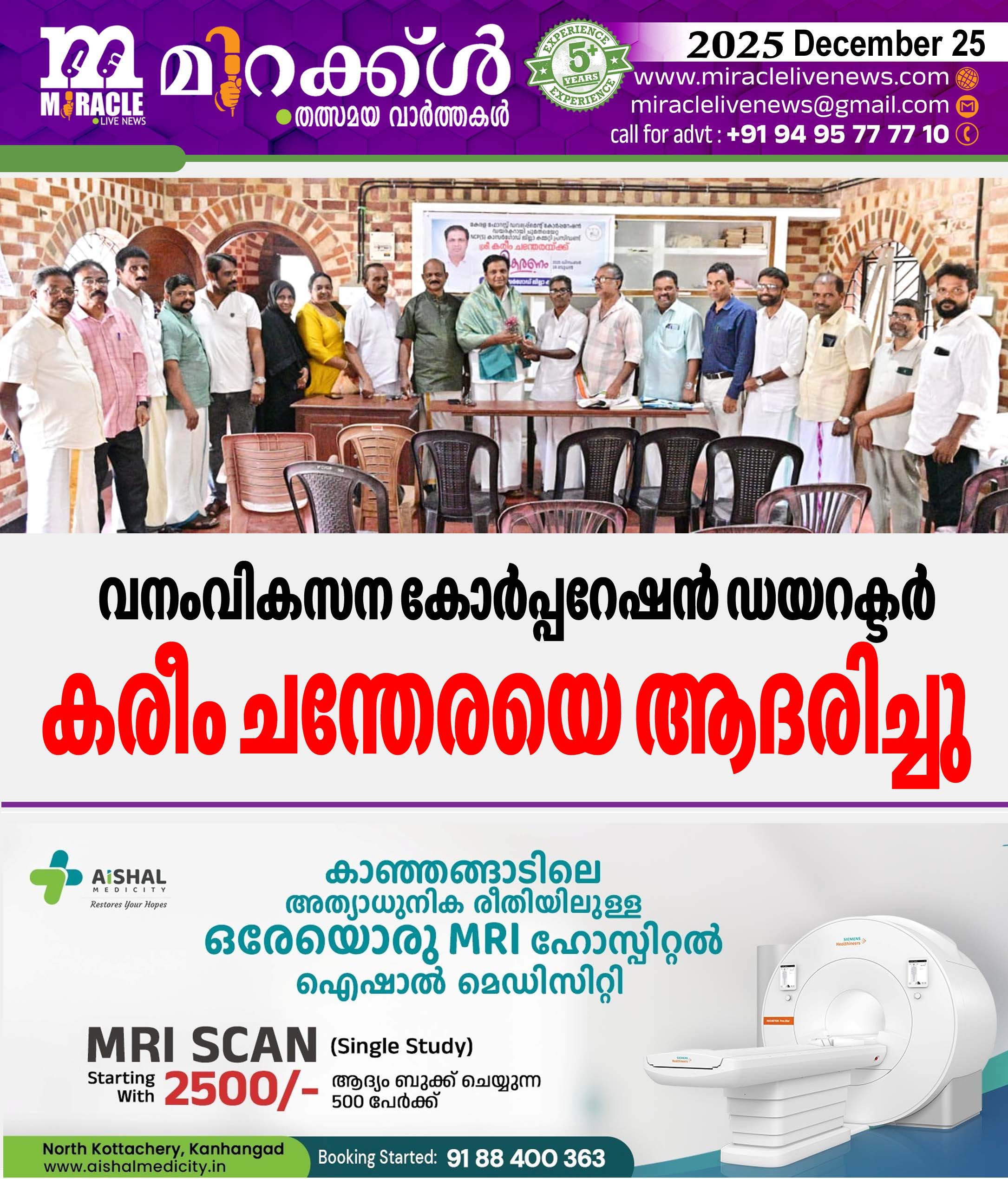 കാഞ്ഞങ്ങാട്: വനം വികസന കോര്പ്പറേഷന് ഡയറക്ടര് ആയി ചുമതലയേറ്റ എന്.സി.പി എസ് കാസര്കോട് ജില്ലാ പ്രസിഡന്റ് കരീം ചന്തേരയെ എന്.സി.പി. എസ് ജില്ലാ കമ്മിറ്റി ആദരിച്ചു. സംസ്ഥാന സെക്രട്ടറി സി. ബാലന് പൊന്നാട അണിയിച്ചു ഉപഹാരം സമ്മാനിച്ചു. ജില്ലയിലെ ബ്ലോക്ക് പ്രസിഡന്റുമാരും പോഷക സംഘടന ഭാരവാഹികളും ഹാരാര്പ്പണം നടത്തി. കാഞ്ഞങ്ങാട് പി. സ്മാരക മന്ദിരത്തില് ചേര്ന്ന യോഗത്തില് ജില്ലാ ട്രഷറര് ബെന്നി നാഗമറ്റം അധ്യക്ഷത വഹിച്ചു. ജില്ലാ ജനറല് സെക്രട്ടറിമാരായ ടി. നാരായണന് മാസ്റ്റര്, ഉദിനൂര് സുകുമാരന്, സുബൈര് പടുപ്പ്, സിദ്ദിഖ് കൈക്കമ്പ, ഒ. കെ ബാലകൃഷ്ണന്, എ.ടി വിജയന്, സീനത്ത് സതീശന്, ബ്ലോക്ക് പ്രസിഡന്റുമാരായ മഹമൂദ് കൈക്കമ്പ, സെമീര് ആണങ്കൂര്, രാഹുല് നിലാങ്കര, നാസര് പള്ളം, മോഹനന് ചുണ്ണംകുളം, ഹമീദ് ചേരംങ്കൈ, രാധാകൃഷ്ണന് കുറ്റിക്കോല്, ഖദീജ മൊഗ്രാല് തുടങ്ങിയവര് പ്രസംഗിച്ചു. കരീം ചന്തേര മറുപടി പ്രസംഗം നടത്തി.
