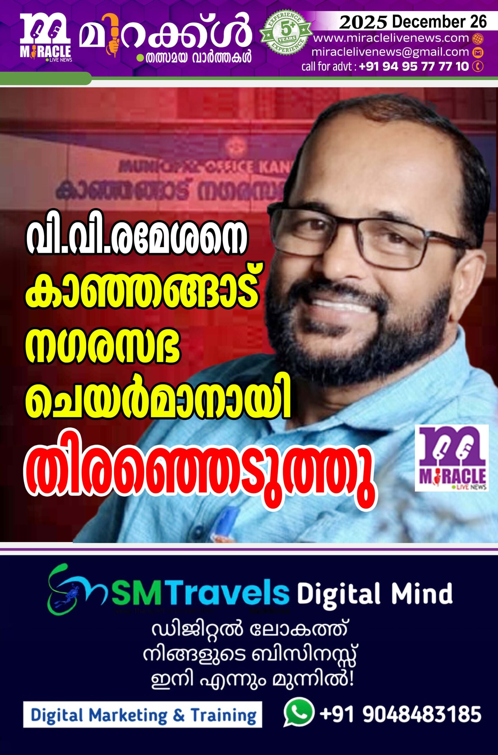 വി.വി.രമേശനെ കാഞ്ഞങ്ങാട് നഗരസഭ ചെയര്‍മാനായി തിരഞ്ഞെടുത്തു