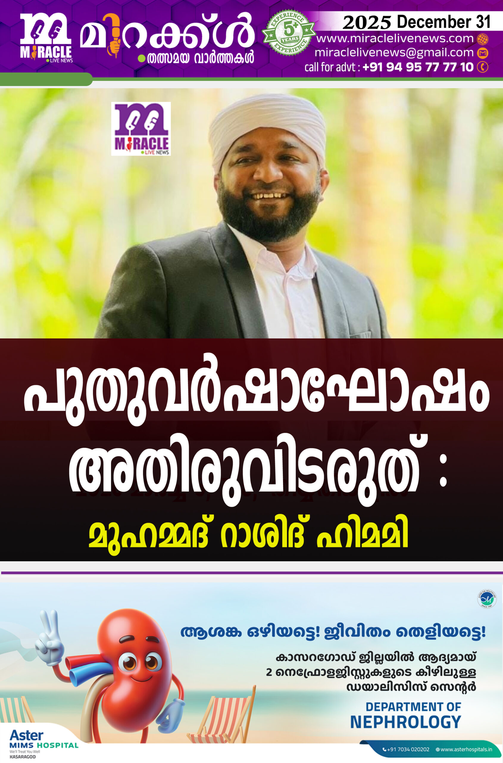 നമ്മുടെ ചുറ്റുഭാഗം കൃത്യമായി നിരീക്ഷിക്കുകയും ആവശ്യങ്ങള് ഉള്ളവര്ക്ക് നിറവേറ്റി കൊടുക്കുകയും വേണമെന്നും. ലഹരി ഉപയോഗിക്കാനുള്ള ലൈസന്സ് ആയി പുതുവര്ഷ ആഘോഷം കാണരുതെന്നും അദ്ദേഹം ഉണര്ത്തി