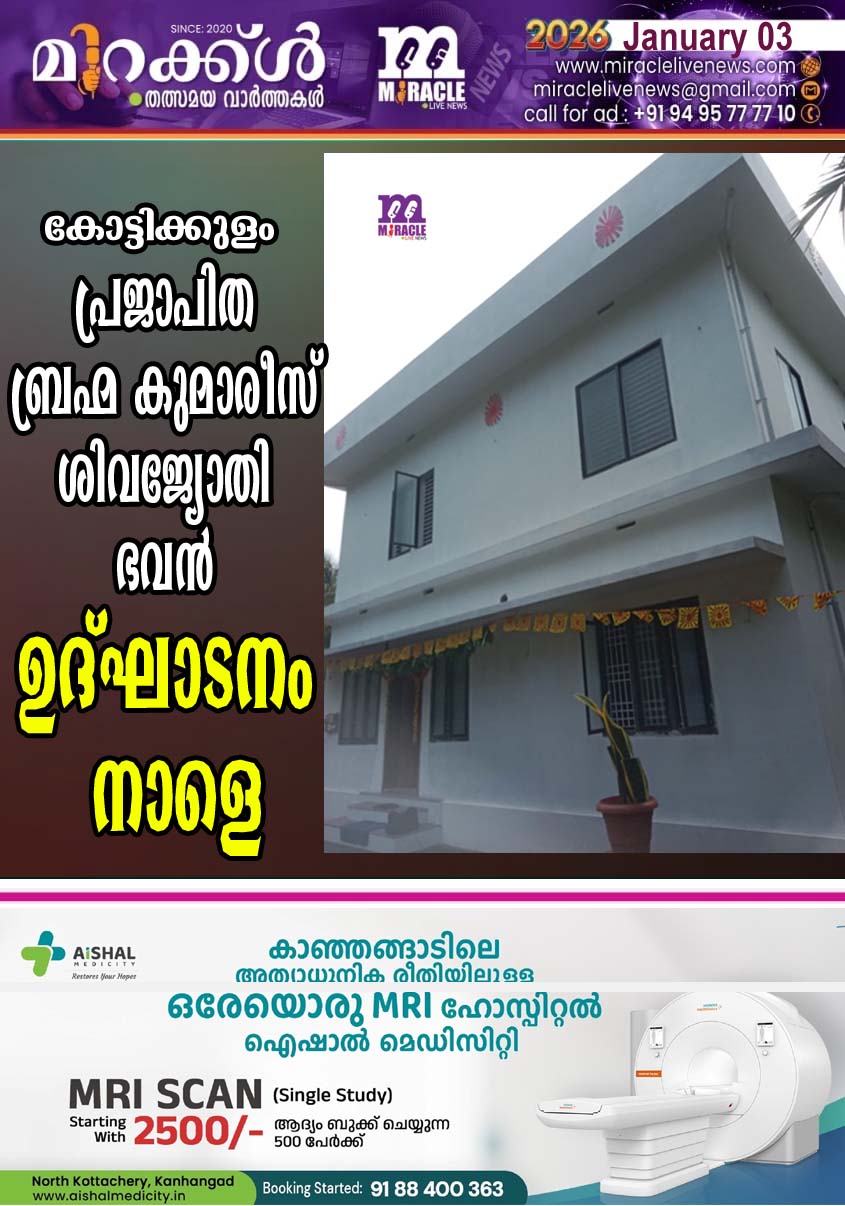 കോട്ടിക്കുളം പ്രജാപിത ബ്രഹ്‌മ കുമാരീസ് ശിവജ്യോതി ഭവന്‍ ഉദ്ഘാടനം നാളെ