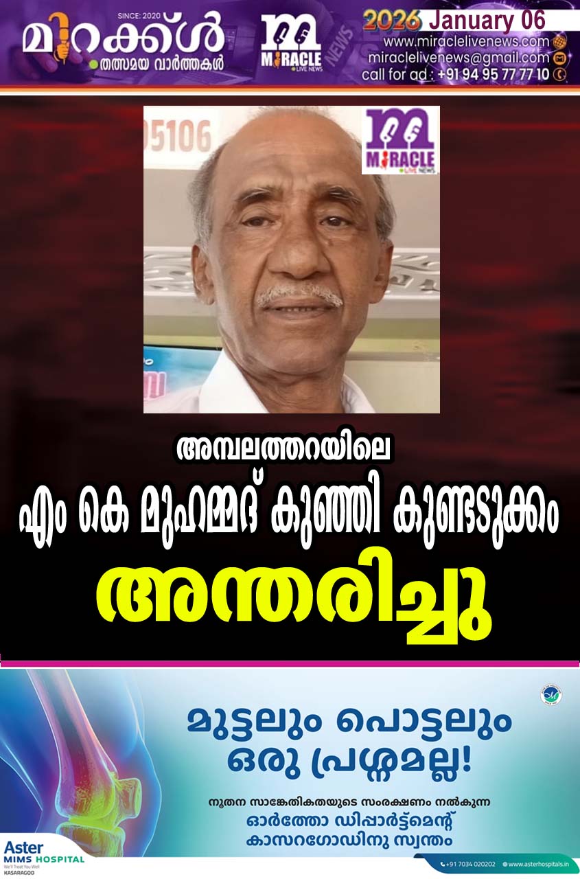 അമ്പലത്തറയിലെ എം കെ മുഹമ്മദ് കുഞ്ഞി കുണ്ടടുക്കം അന്തരിച്ചു