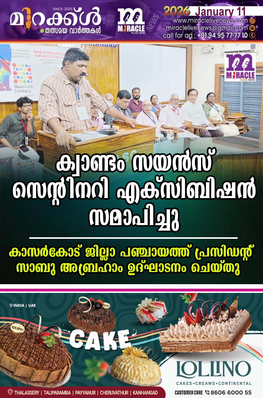 ക്വാണ്ടം സയന്‍സ് സയന്‍സ് എക്‌സിബിഷന്‍ സമാപിച്ചു; കാസര്‍കോട് ജില്ലാ പഞ്ചായത്ത് പ്രസിഡന്റ് സാബു അബ്രഹാം ഉദ്ഘാടനം ചെയ്തു