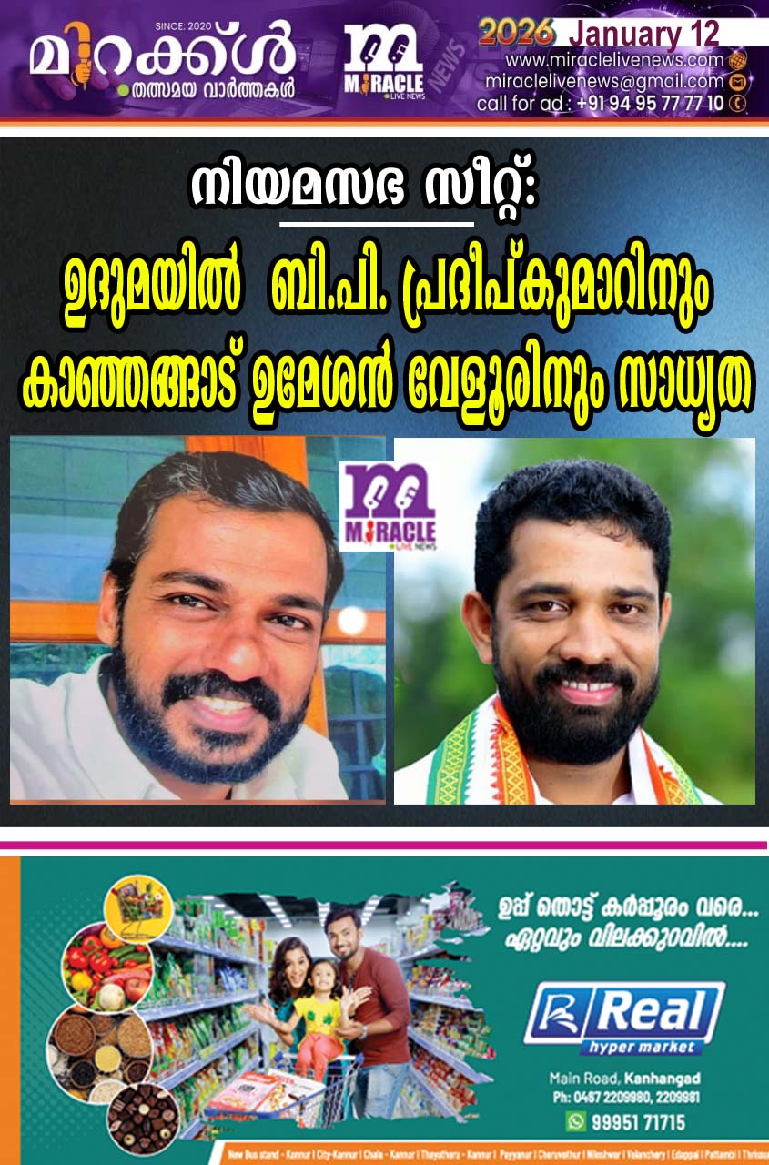 കാഞ്ഞങ്ങാട്: നിയമസഭ തെരഞ്ഞെടുപ്പില്‍ യുഡിഎഫ് സ്ഥാനാര്‍ത്ഥിയായി ഉദുമ സീറ്റില്‍ ബിപി. പ്രദീപ്കുമാറിനും കാഞ്ഞങ്ങാട് ഉമേശന്‍ വേളൂരിനും സാധ്യത. പ്രദീപ്കുമാര്‍ ഡി സി സി വൈസ് പ്രസിഡന്റ് ആണ്. മുന്‍ യൂത്ത് കോണ്‍ഗ്രസ് ജില്ലാ പ്രസിഡന്റ്, തുടങ്ങി സംഘടന രംഗത്ത് സജീവമാണ്. ഉദുമ മണ്ഡലത്തില്‍ സജീവമായി പരിഗണിക്കപ്പെടുന്ന പേര് പ്രദീപിന്റേതാണ്. നിരവധി സമരങ്ങള്‍ നയിച്ച നേതാവ് കൂടിയായ പ്രദീപ് യൂത്ത് കോണ്‍ഗ്രസില്‍ശക്തമായ അടിത്തറ ഉണ്ടാക്കിയെടുത്തിട്ടുണ്ട്. ഉമേശന്‍ വേളൂര്‍ കാഞ്ഞങ്ങാട് ബ്ലോക്ക് പ്രസിഡന്റ് ആണ്. മുന്‍ കിനാനൂര്‍ കരിന്തളം മണ്ഡലം പ്രസിഡന്റ് ആണ്. ജീവകാരുണ്യ പ്രവര്‍ത്തനങ്ങളില്‍ സജീമാണ്. നിരവധി രോഗികള്‍ക്ക് ചികിത്സ സഹായം നല്‍കുന്നതില്‍ ജനകീയ ഇടപെടല്‍ നടത്തിയിട്ടുണ്ട്. കൊറോണകാലത്ത് നടത്തിയ ഇടപെടല്‍ ജനങ്ങളുടെ അംഗീകാരം നേടിയിരുന്നു. കുടിവെള്ളക്ഷാമം രൂക്ഷമായ ഘട്ടങ്ങളില്‍ 3 വര്‍ഷം കുടിവെള്ള വിതരണം നടത്തുന്നതില്‍ നേരിട്ട് ഇടപെട്ട വ്യക്തിയാണ്. കാഞ്ഞങ്ങാട് മണ്ഡലത്തെ സംബന്ധിച്ചിടത്തോളം വിജയ സാധ്യത ഉറപ്പിക്കുന്ന മട്ടിക്കൈ, കിനാനൂര്‍ കരിന്തളം പഞ്ചായത്തുകളില്‍ ഉമേശനുള്ള ജനകീയ അംഗീകാരം കാഞ്ഞങ്ങാട് മണ്ഡലത്തില്‍ ചര്‍ച്ചാവിഷയമാകും. രാജ്‌മോഹന്‍ ഉണ്ണിത്താനുമായി അടുത്ത ബന്ധം പുലര്‍ത്തുന്നയാളാണ് ഉമേശന്‍ വേളൂര്‍ .അതുകൊണ്ട് തന്നെ നേതൃത്വം പരിഗണിക്കാനാണ് സാധ്യത.