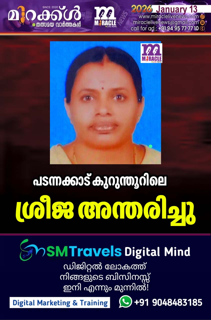 പടന്നക്കാട്: കുറുന്തൂറിലെ ശ്രീജ (46) അന്തരിച്ചു. ഭര്ത്താവ് ഷണ്മുഖന്. മക്കള്: അക്ഷയ്, ആകാശ്.