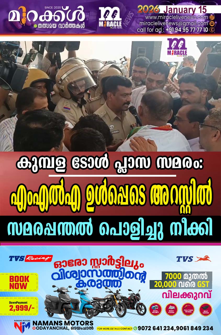 എകെഎം അഷ്റഫ്, സിപിഎംകുമ്പള ഏരിയാ സെക്രട്ടറി സിഎ സുബൈറും ഉള്പ്പെടെയുള്ള 15 ഓളം പ്രതിഷേധ സമരക്കാരെ സര്കോട് ഡിവൈഎസ്പി. സി കെ സുനില്കുമാറിന്റെ നേതൃത്വത്തിലുള്ള പോലീസ് സംഘംഅറസ്റ്റു ചെയ്തു നീക്കി. എംഎല്എയെ കാസര്കോട് എ ആര് ക്യാമ്പിലേക്കും സിഎ സുബൈറിനെയും കുമ്പള പഞ്ചായത്ത് പ്രസിഡന്റ് വിപി അബ്ദുല് ഖാദര് ഹാജി, ബ്ലോക്ക് പഞ്ചായത്ത് സ്റ്റാന്റിംഗ് കമ്മിറ്റി ചെയര്മാന് അഷ്റഫ് കാര്ളെ, എ.കെ ആരിഫ്, കോണ്ഗ്രസ് നേതാവ് ലക്ഷ്മണ പ്രഭു തുടങ്ങിയവരെ കുമ്പള പൊലീസ് സ്റ്റേഷനിലേക്കും മാറ്റി. അറസ്റ്റിനു ശേഷം ടോള് പ്ലാസയ്ക്ക് സമീപത്ത് കെട്ടിയ സമരപന്തല് പോലീസ് പൊളിച്ചു നീക്കി. സമരം നിര്ത്തില്ലെന്നും സമര സമിതിയോഗം ചേര്ന്ന് ഭാവി സമര പരിപാടികളെ കുറിച്ച് ആലോചിക്കുമെന്നും എകെഎം അഷ്റഫ് എംഎല്എ അറിയിച്ചു.