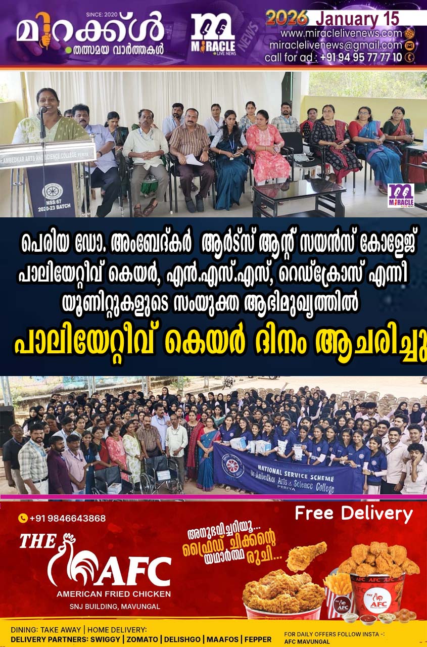 പെരിയ ഡോ. അംബേദ്കര്‍ ആര്‍ട്‌സ് ആന്റ് സയന്‍സ് കോളേജ് പാലിയേറ്റീവ് കെയര്‍, എന്‍.എസ്.എസ്, റെഡ്‌ക്രോസ് എന്നീ യൂണിറ്റുകളുടെ സംയുക്ത ആഭിമുഖ്യത്തില്‍ പാലിയേറ്റീവ് കെയര്‍ ദിനം ആചരിച്ചു