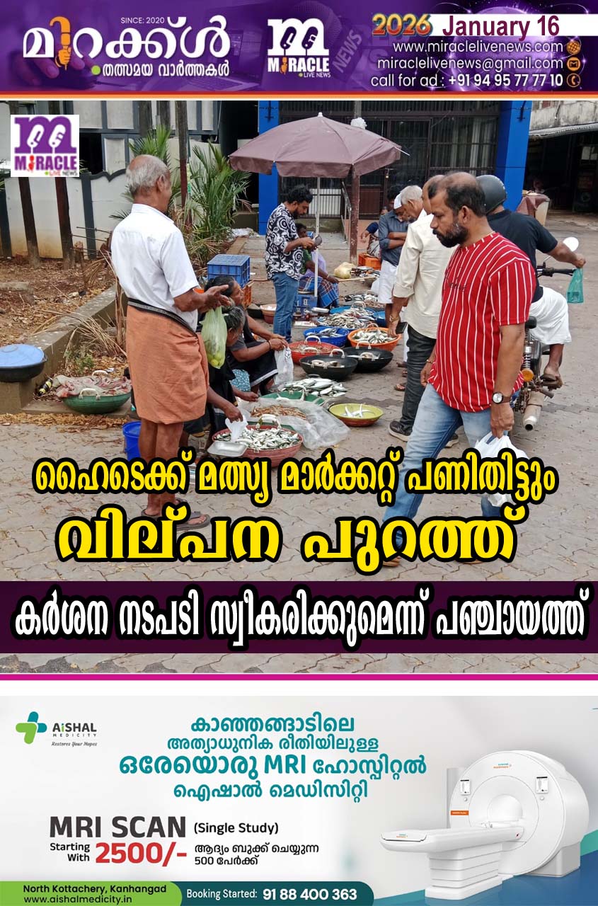 പാലക്കുന്ന്: കാസര്കോട്കാഞ്ഞങ്ങാട് സംസ്ഥാന പാതയോരത്ത് പാലക്കുന്നില് വര്ഷങ്ങളായി നടക്കുന്ന പരസ്യ മത്സ്യ വില്പന അവസാനിപ്പിക്കാനാണ് ഉദുമ പഞ്ചായത്ത് ലക്ഷങ്ങള് മുടക്കി ഹൈടെക് മത്സ്യ മാര്ക്കറ്റ് പണിതത്. കഴിഞ്ഞ നവംബറില് സി. എച്ച്. കുഞ്ഞമ്പു എം എല് എ അത് ഉദ്ഘാടനം ചെയ്ത് തുറന്ന് കൊടുത്തു. പക്ഷേ സമീപത്തെ കച്ചവടക്കാര്ക്കും യാത്രക്കാര്ക്കും ദുരിതമായി മാര്ക്കറ്റിന് വെളിയില് ചിലര് മത്സ്യ വില്പന ഇപ്പോഴും തുടരുകയാണ്. ‘ ടൗണില് ലക്ഷങ്ങള് ചെലവിട്ട് ആധുനിക രീതിയില് നിര്മിച്ച മാര്ക്കറ്റിന് പുറത്ത് മത്സ്യ വില്പന നടത്തുകയും പൊതുജനങ്ങള്ക്ക് ബുദ്ധിമുട്ടുണ്ടാക്കുന്ന രീതിയില് പരിസരം മലിനമാക്കുകയും ചെയ്യുന്നതിനെതിരെ കര്ശനമായ നിയമ നടപടി സ്വീകരിക്കാന് ഉദുമ പഞ്ചായത്ത് ഭരണ സമിതി യോഗം തീരുമാനിച്ചു. മത്സ്യ തൊഴിലാളികളും പൊതുജനങ്ങളും ഇതുമായി സഹകരിക്കണമെന്ന് യോഗം അഭ്യര്ഥിച്ചു. മത്സ്യമാര്ക്കറ്റിന്റെ നടത്തിപ്പിന് പുനര്ലേലം നടത്തുന്നതിനും യോഗം തീരുമാനിച്ചു. പ്രസിഡണ്ട് പി.വി.രാജേന്ദ്രന് അദ്ധ്യക്ഷത വഹിച്ചു.
