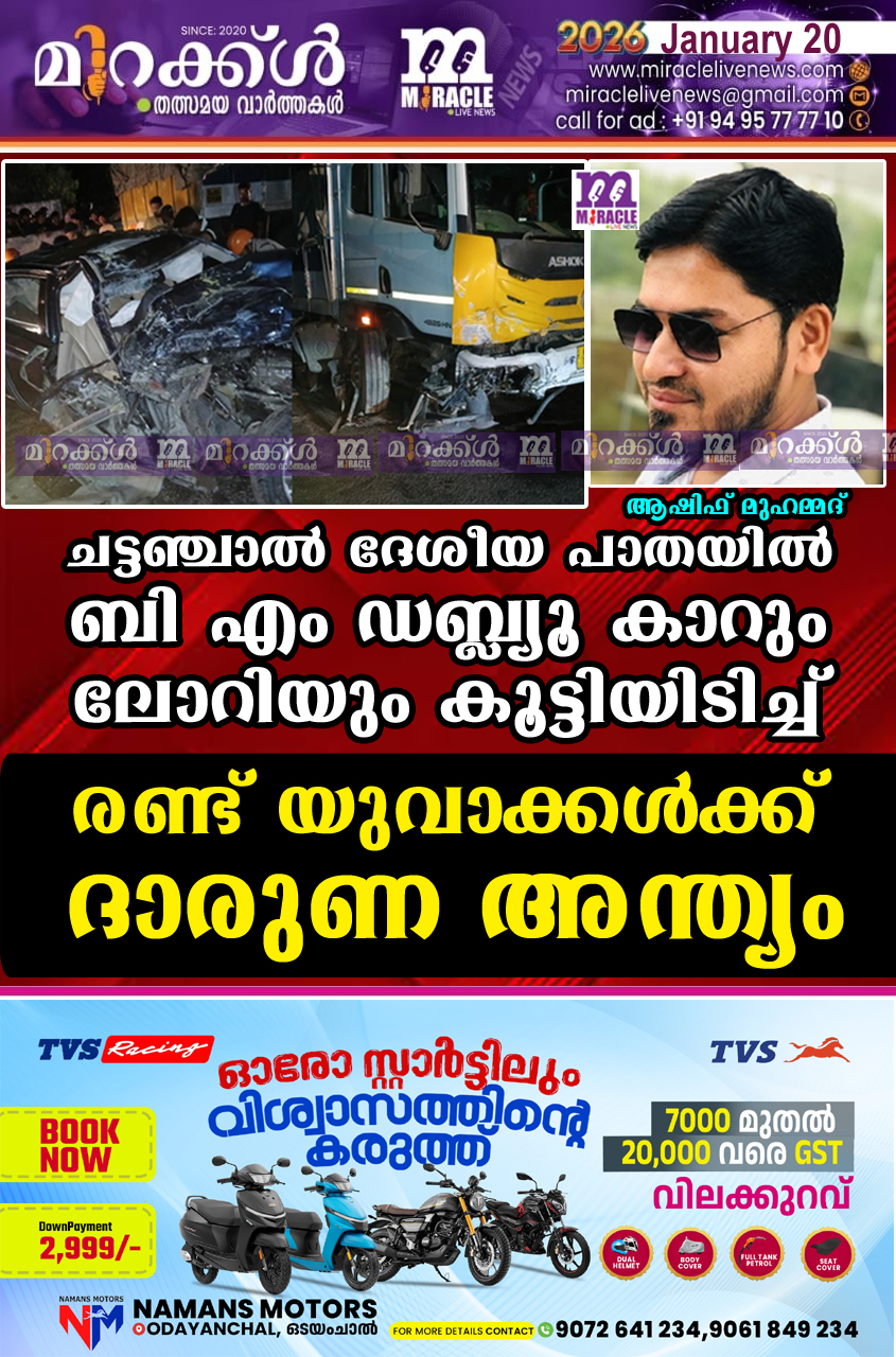 വയനാട്ടില് വിനോദയാത്ര കഴിഞ്ഞ് മംഗളൂരുവിലേക്ക് മടങ്ങുന്നതിനിടെയാണ് അപകടം. ഇവര് സഞ്ചരിച്ച ബി എം ഡബ്ല്യൂ കാര് കെ എല് 39 ടി 0599 നമ്പര് ലോറിയുമായി കൂട്ടി ഇടിക്കുകയായിരുന്നു. ആഡംബര കാറിന്റെ