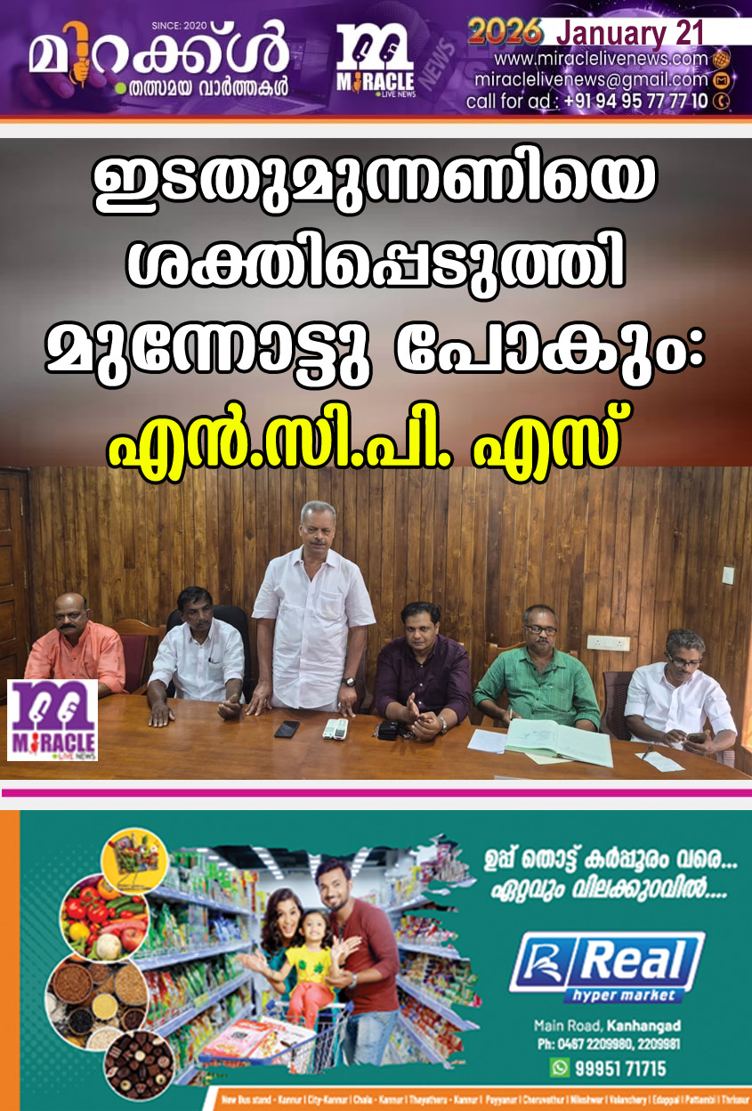 കാഞ്ഞങ്ങാട്: കേരളത്തിന്റെ പുരോഗതിക്കും സര്ക്കാരിന്റെ വികസന പദ്ധതികളുടെ തുടര്ച്ചക്കും ഇടതുമുന്നണിയെ കൂടുതല് ശക്തിപ്പെടുത്തി മുന്നോട്ടു പോകാന് പാര്ട്ടി എന്നും രംഗത്തിറങ്ങുമെന്ന് എന്.സി.പി.എസ് സംസ്ഥാന ജനറല് സെക്രട്ടറി പി.കെ . രവീന്ദ്രന് പറഞ്ഞു. എന്.സി.പി.എസ് കാസര്കോട് ജില്ലാ നേതൃയോഗം കാഞ്ഞങ്ങാട് റസ്റ്റ് ഹൗസില് ഉദ്ഘാടനം ചെയ്യുകയായിരുന്നു അദ്ദേഹം. സംസ്ഥാനത്തിന്റെ വികസന തുടര്ച്ചക്കായി പിണറായി വിജയന് നേതൃത്വം നല്കുന്ന സര്ക്കാരിന്റെ തുടര് ഭരണം കേരളത്തില് ഉറപ്പാക്കണമെന്ന് ജനങ്ങള് ചിന്തിക്കുന്നുണ്ട്. പ്രതിപക്ഷത്തിന്റെയും ബി.ജെ.പിയുടെയും ദുഷ് പ്രചാരണങ്ങളൊന്നും നിയമസഭാ തിരഞ്ഞെടുപ്പില് വിലപ്പോകില്ലെന്നും രവീന്ദ്രന് പറഞ്ഞു. മുഖ്യമന്ത്രി പിണറായി വിജയന് ഉദ്ഘാടനം ചെയ്തു സി. പി. എം സംസ്ഥാന സെക്രട്ടറി എം വി ഗോവിന്ദന് മാസ്റ്റര് നയിക്കുന്ന എല്. ഡി. എഫ് വടക്കന് മേഖല ജാഥ വിജയിപ്പിക്കാനും യോഗം തീരുമാനിച്ചു. ജില്ലാ പ്രസിഡന്റ് കരീം ചന്തേര അധ്യക്ഷത വഹിച്ചു. സംസ്ഥാന സെക്രട്ടറി സി. ബാലന്, ജില്ലാ ട്രഷറര് ബെന്നി നാഗമറ്റം, ടി. നാരായണന് മാസ്റ്റര്, സുബൈര് പടുപ്പ്, ഉദിനൂര് സുകുമാരന്, ഒ. കെ ബാലകൃഷ്ണന്, രാജു കൊയ്യോന്, ദാമോദരന്, സിദ്ധിഖ് കൈക്കമ്പ, സീനത്ത് സതീശന്, മഹമൂദ് കൈക്കമ്പ, രാഹുല് നിലാങ്കര, സമീര് അണങ്കൂര്, നാസര് പള്ളം, ഹമീദ് ചേരങ്കൈ, ലിജോ സെബാസ്റ്റ്യന്, മോഹനന് ചുണ്ണംകുളം തുടങ്ങിയവര് പ്രസംഗിച്ചു.