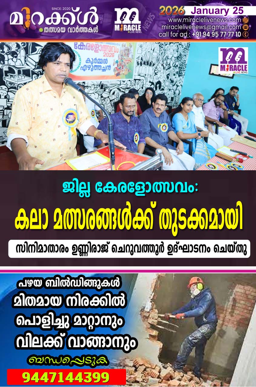 വെള്ളിക്കോത്ത്: കേരള സംസ്ഥാന യുവജനക്ഷേമ ബോര്ഡിന്റെയും ജില്ലാ പഞ്ചായത്തിന്റെയും സംയുക്താഭിമുഖ്യത്തില് നടക്കുന്ന ജില്ലാതല കേരളോത്സവം കലാ മത്സരങ്ങള് വെള്ളിക്കോത്ത് വിവിധ വേദികളില് തുടക്കമായി. ജില്ലാതലാ കേരളോത്സവത്തിന്റെ ഉദ്ഘാടനം സിനിമാതാരം ഉണ്ണിരാജ് ചെറുവത്തൂര് നിര്വഹിച്ചു. ജില്ലാ പഞ്ചായത്ത് അംഗം കെ. സബീഷ് അധ്യക്ഷത വഹിച്ചു. ജില്ലാ പഞ്ചായത്ത് വൈസ് പ്രസിഡന്റ് കെ. കെ. സോയ, ആരോഗ്യ വിദ്യാഭ്യാസ സ്റ്റാന്ഡിങ് കമ്മിറ്റി ചെയര്മാന് എം. മനു, അജാനൂര് പഞ്ചായത്ത് പ്രസിഡന്റ് വി. വി. തുളസി, ജില്ലാ പഞ്ചായത്ത് അംഗം ടി.വി. രാധിക, അജാനൂര് പഞ്ചായത്ത് വികസനകാര്യ സ്റ്റാന്ഡിങ് കമ്മിറ്റി ചെയര്പേഴ്സണ് പി.കാവ്യ, ക്ഷേമകാര്യ സ്റ്റാന്ഡിങ് കമ്മിറ്റി ചെയര്പേഴ്സണ് സി.കുഞ്ഞാമിന, ആരോഗ്യ വിദ്യാഭ്യാസ സ്റ്റാന്ഡിങ് കമ്മിറ്റി ചെയര്മാന് എം. വി. രാഘവന്, ബ്ലോക്ക് പഞ്ചായത്ത് മെമ്പര് മാടിക്കാല് നാരായണന്, ജില്ലാ പ്രോഗ്രാം ഓഫീസര് സി. പി. ഷിലാസ് എന്നിവര് സംസാരിച്ചു അജാനൂര് പഞ്ചായത്ത് വൈസ് പ്രസിഡന്റ് മൂലക്കണ്ടം പ്രഭാകരന് സ്വാഗതവും കെ. വിദ്യാധരന് നന്ദിയും പറഞ്ഞു.