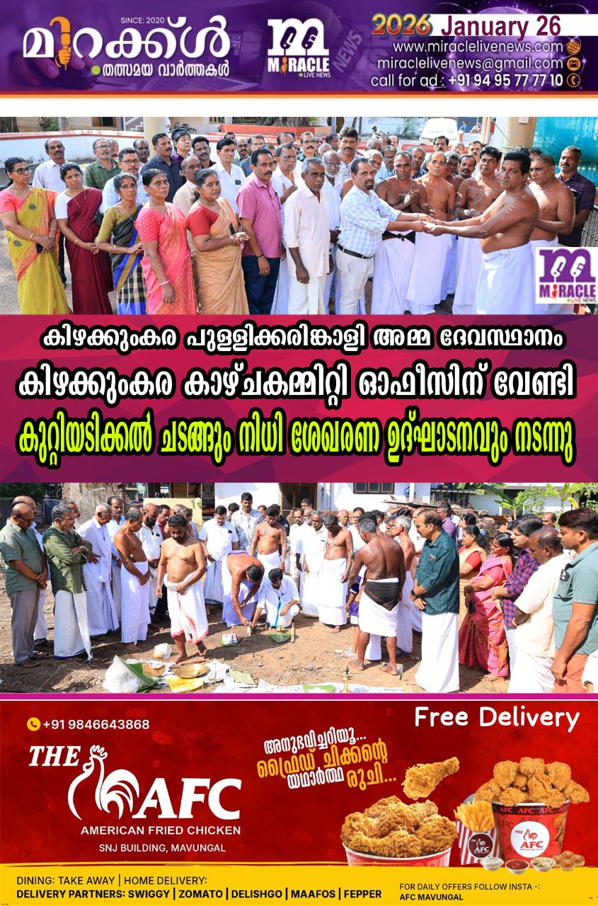 കിഴക്കുംകര പുള്ളിക്കരിങ്കാളി അമ്മ ദേവസ്ഥാനം കിഴക്കുംകര കാഴ്ചകമ്മിറ്റി ഓഫീസിന് വേണ്ടി കുറ്റിയടിക്കല്‍ ചടങ്ങും നിധി ശേഖരണ ഉദ്ഘാടനവും നടന്നു