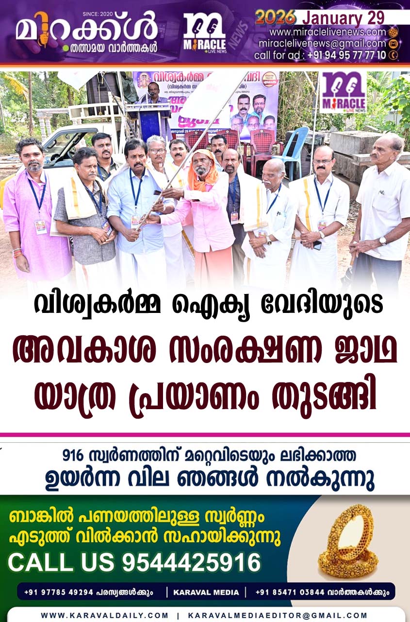 വിശ്വകര്‍മ്മ ഐക്യ വേദിയുടെ അവകാശ സംരക്ഷണ ജാഥ യാത്ര പ്രയാണം തുടങ്ങി