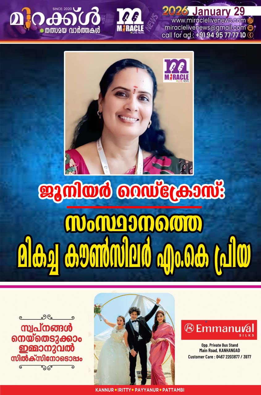 കാഞ്ഞങ്ങാട്: ഇന്ത്യന് റെഡ് ക്രോസ്സ് സൊസൈറ്റി വിദ്യാലയത്തില് നടപ്പിലാക്കി വരുന്ന ജൂനിയര് റെഡ്ക്രോസിന്റെ സംസ്ഥാനത്തെ മികച്ച കൗണ്സിലര് പുരസ്ക്കാരം വെള്ളിക്കോത്ത് മഹാകവി പി.സ്മാരക ഗവ.വൊക്കേഷണല് ഹയര് സെക്കന്റി സ്കൂളിലെ ജെ.ആര്.സി.കൗണ്സിലറായ ശ്രീമതി എം.കെ പ്രിയ ടീച്ചര്ക്ക് ലഭിച്ചു.സാമൂഹിക പ്രതിബദ്ധതയും, വൈവിധ്യവുമായ പ്രവര്ത്തനങ്ങളുടെ അടിസ്ഥാനത്തില് ജൂനിയര് റെഡ്ക്രോസ് വെള്ളിക്കോത്തിന് ജില്ലയിലെ മികച്ച യൂണിറ്റിനുള്ള പുരസ്കാരം ലഭിച്ചിരുന്നു. ജില്ലയിലെ മികച്ച ജെ.ആര്.സി കൗണ്സിലര് എന്ന അംഗീകാരത്തെ തുടര്ന്നാണ് സംസ്ഥാനത്തെ മികച്ച കൗണ്സിലര് അവാര്ഡ് ലഭിച്ചത്. സ്പെഷലിസ്റ്റ് കുട്ടികളെ പ്രവര്ത്തന പങ്കാളികളാക്കുകയും പാലിയേറ്റീവ് പ്രവര്ത്തനങ്ങള്ക്ക് മുന്ഗണന നല്കുകയും ചെയ്ത് സാമൂഹിക പ്രതിബന്ധതയുള്ള പ്രവര്ത്തനങ്ങളാണ് വിദ്യാലയത്തില് ജെ.ആര്.സി കേഡറ്റ് ഏറ്റെടുത്ത് നിര്വഹിച്ചിട്ടുള്ളത്. ലഹരിക്കെതിരെ വൈവിധ്യമാര്ന്ന പരിപാടികള് സംഘടിപ്പിച്ചു. ലഹരി വിരുദ്ധ സദസ്സ്, സൈക്കിള് റാലി, ഫ്ലാഷ് മോബ്, കടകളും വീടുകളും കയറിയിറങ്ങി ലഘുലേഖ വിതരണം ചെയ്ത് ബോധവല്കരണ പരിപാടികളിലൂടെ സമൂഹത്തെ ഉദ്ബോധിപ്പിക്കാനും വിജയിപ്പിക്കാനും സാധിച്ചിട്ടുണ്ട്. തുടര്ച്ചയായി കുറേ വര്ഷങ്ങളായി വെള്ളിക്കോത്തെ ജെ.ആര്.സി. കേഡറ്റ്സ് ആണ് ജീന് ഹെന്ട്രി ഡ്യൂന്റ്ക്വി’സ് മത്സരത്തില് ജില്ലയെ പ്രതിനിധീകരിച്ച് സംസ്ഥാന ക്വിസ് മത്സര പരിപാടികളില് പങ്കെടുത്ത് വരുന്നത്.ദിനാചരണങ്ങളുടെ ഭാഗമായി മ്യൂസിക്കല് യോഗ ഫ്യൂഷന് പ്രോഗ്രാം, ദുരിതാശ്വാസ പ്രവര്ത്തനങ്ങള്, വയോജന പരിപാലനം, വിദ്യാലയങ്കണം ഹരിതാഭമാക്കല് തുടങ്ങി വ്യത്യസ്ത പരിപാടികള്ക്ക് നേതൃത്വം വഹിച്ചുവരുന്നു.