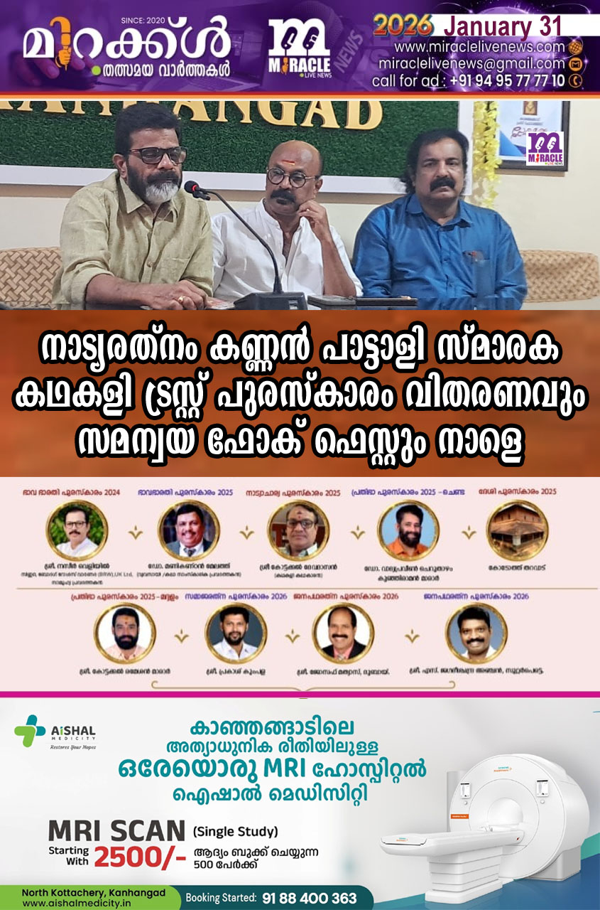 സമാപന പരിപാടി അഡ്വ.സി എച്ച് കുഞ്ഞമ്പു ഉദ്ഘാടനം ചെയ്യും. ഡോ. ആര്. ചന്ദ്ര ബോസ് അനുസ്മരണ പ്രഭാഷണം നടത്തും. ട്രസ്റ്റ് ചെയര്മാന് ഡോ. എ എം ശ്രീധരന് അധ്യക്ഷനാവും. 6.30 മുതല് കഥകളി, യക്ഷഗാനം എന്നിവ നടക്കും. വാര്ത്ത സമ്മേളനത്തില് ട്രസ്റ്റ് ചെയര്മാന്