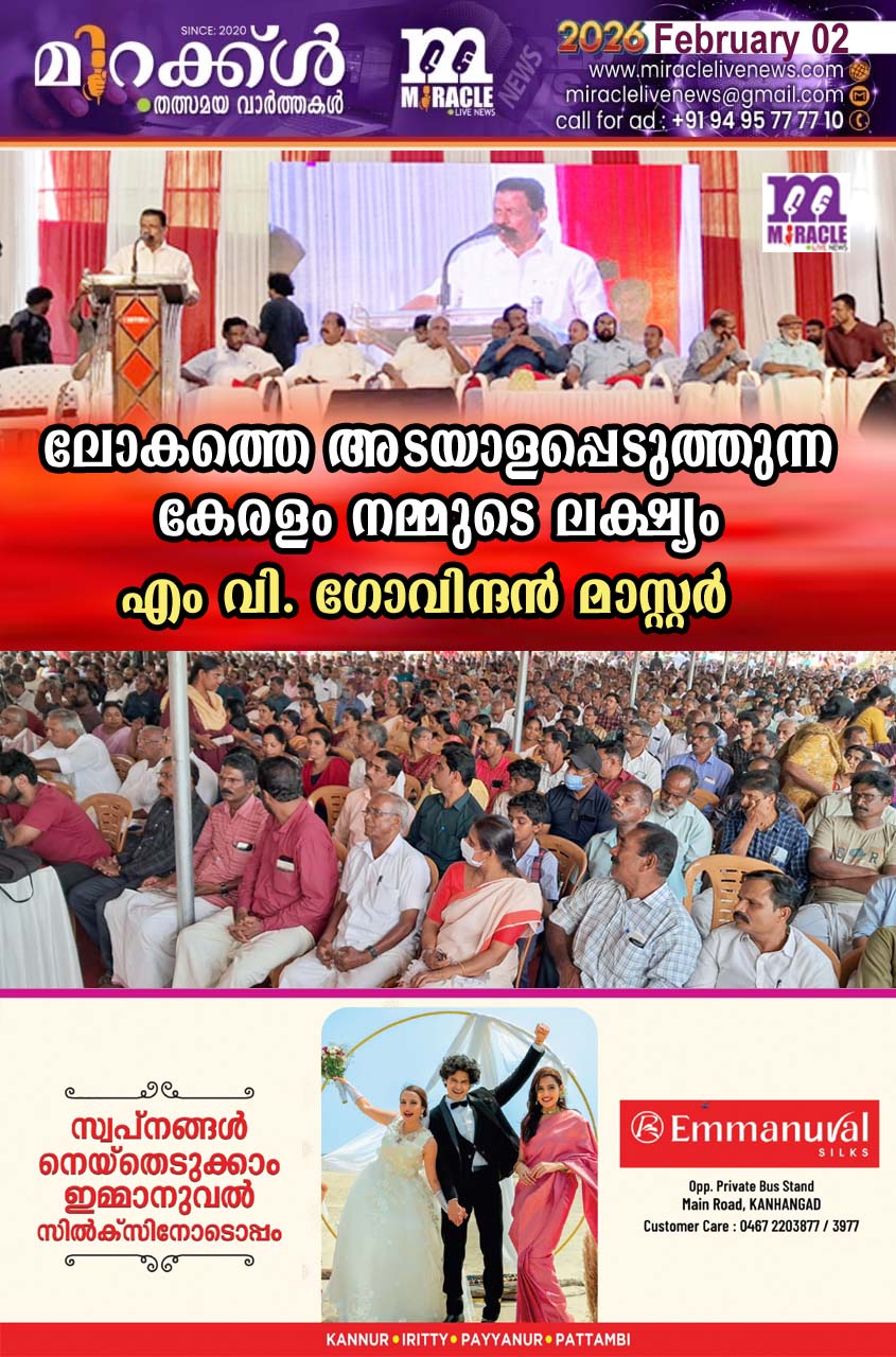 കാഞ്ഞങ്ങാട് : കേരളത്തെ ലോക ഭൂപടത്തില് നിന്നും ഇല്ലാത്തകന് കേന്ദ്രം ശ്രമിക്കുമ്പോള് ലോകത്തിന് മുന്നില് അടയാള പ്പെടുത്തുന്ന കേരളമാണ് നമ്മുടെ ലക്ഷ്യമെന്ന് എം വി. ഗോവിന്ദന് മാസ്റ്റര് എല്ഡിഎഫ് സംസ്ഥാന കമ്മിറ്റിയുടെ നേതൃത്വത്തില് സിപിഎം സംസ്ഥാന സെക്രട്ടറി എം വി. ഗോവിന്ദന് മാസ്റ്റര്നയിക്കുന്ന