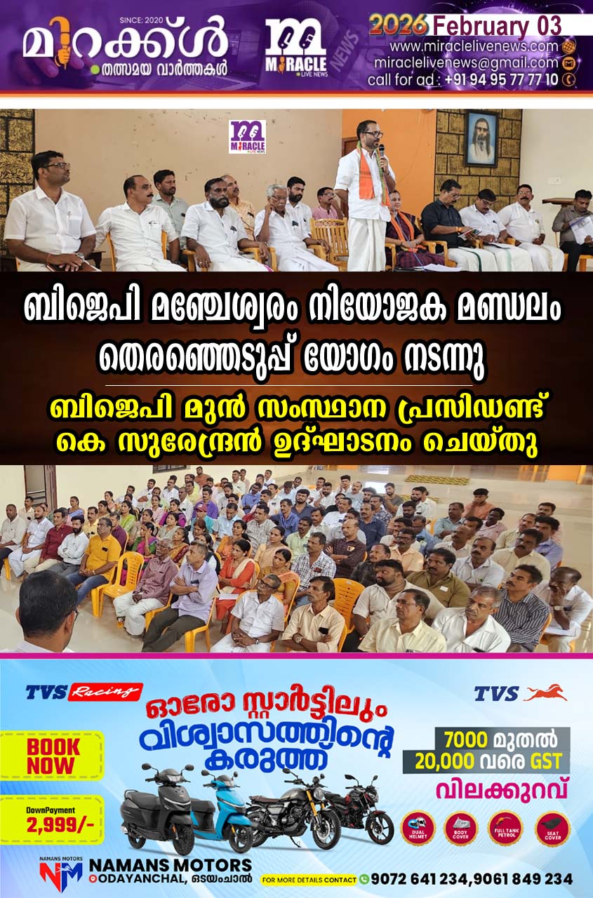 ബിജെപി മഞ്ചേശ്വരം നിയോജക മണ്ഡലം തെരഞ്ഞെടുപ്പ് യോഗം നടന്നു; ബിജെപി മുന്‍ സംസ്ഥാന പ്രസിഡണ്ട് കെ സുരേന്ദ്രന്‍ ഉദ്ഘാടനം ചെയ്തു