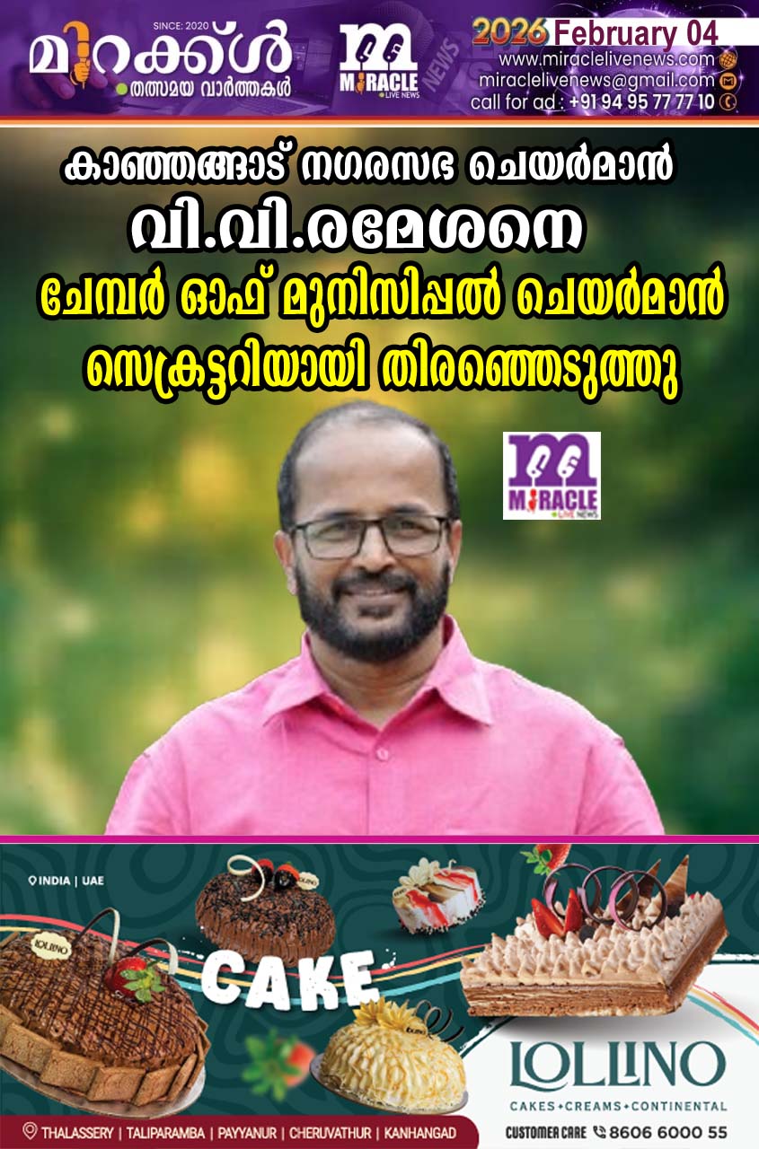 കാഞ്ഞങ്ങാട് നഗരസഭ ചെയര്‍മാന്‍ വി.വി.രമേശനെ ചേമ്പര്‍ ഓഫ് മുനിസിപ്പല്‍ ചെയര്‍മാന്‍ സെക്രട്ടറിയായി തിരഞ്ഞെടുത്തു