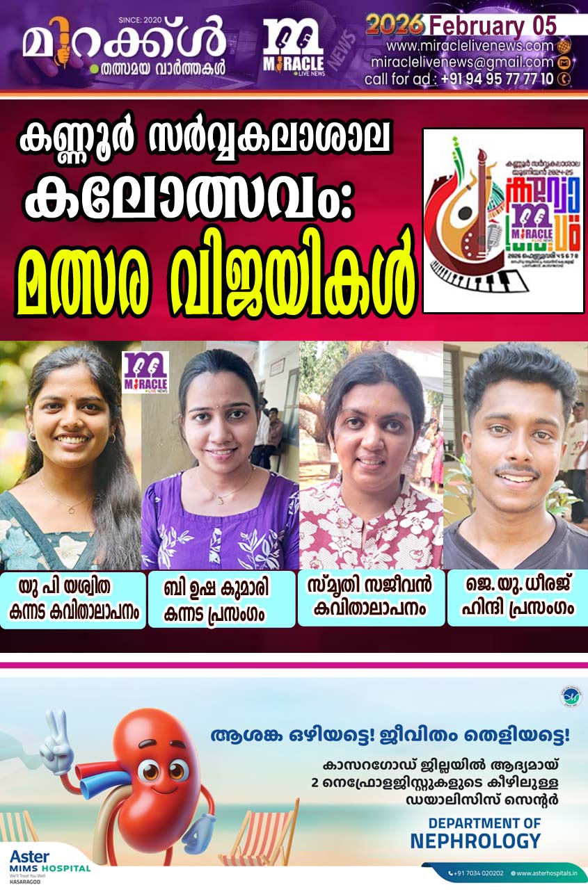 ഒന്നാം സ്ഥാനം:പി മുര്ഷിത നിര്മലഗിരി കോളേജ് നിര്മലഗിരി ,രണ്ടാംസ്ഥാനം:എം കെ പി ഫാത്തിമ ഫൈസല്