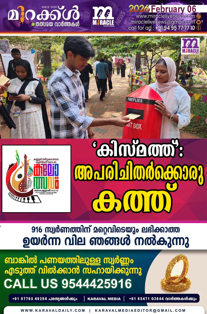 കാഞ്ഞങ്ങാട്: കണ്ണൂര്‍ സര്‍വ്വകലാശാല കലോത്സവത്തിരക്കിനിടയില്‍ അലങ്കരിച്ചൊരുക്കിയ ഒരു പെട്ടിയുമായി നടക്കുന്ന വളണ്ടിയര്‍മാരെ നിങ്ങള്‍ കണ്ടേക്കാം. ‘കിസ്മത്ത്’ എന്നാണ് ഈ സോഷ്യല്‍ എക്‌സ്‌പെരിമെന്റിന് അവര്‍ നല്‍കിയിരിക്കുന്ന പേര്.കൂടെയുള്ളവര്‍ക്ക് പോലും നല്‍കാത്ത ചില തുറന്നുപറച്ചിലുകള്‍, സ്‌നേഹവാക്കുകള്‍, അല്ലെങ്കില്‍ സാന്ത്വനങ്ങള്‍ ഒരു കത്തില്‍ എഴുതി ആ പെട്ടിയിലിടാം. പകരം ആ പെട്ടിയില്‍ നേരത്തെ ആരോ നിക്ഷേപിച്ച മറ്റൊരു കത്ത് നിങ്ങള്‍ക്ക് സ്വന്തമാക്കാം.