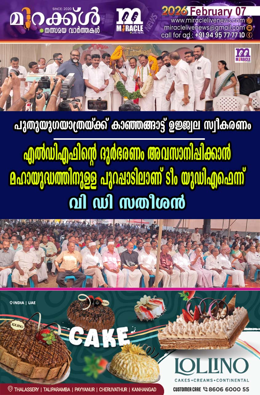 പുതുയുഗയാത്രയ്ക്ക് കാഞ്ഞങ്ങാട്ട് ഉജ്ജ്വല സ്വീകരണം: എല്‍ഡിഎഫിന്റെ ദുര്‍ഭരണം അവസാനിപ്പിക്കാന്‍ മഹായുദ്ധത്തിനുള്ള പുറപ്പാടിലാണ് ടീം യുഡിഎഫെന്ന് വി ഡി സതീശന്‍