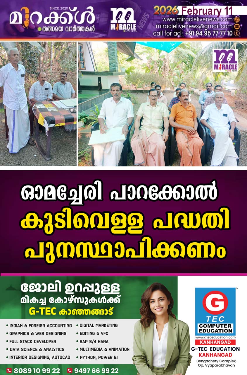 കരിന്തളം:കിനാനൂര് കരിന്തളം ഗ്രാമ പഞ്ചായത്തിലെ ഓമച്ചേരി പാറക്കോല് കുടിവെള്ള പദ്ധതി ഒരു വര്ഷമായി അവ താളത്തിലാണ്.ബന്ധപ്പെട്ട അധികൃതരുടെ അനാസ്ഥയും കാര്യപ്രാപ്തി കുറവുമൂലവും 120 ഓളം കുടുംബങ്ങള്ക്ക് കുടിവെള്ളം നഷ്ടപ്പെട്ടിരിക്കുകയാണ് നിലവിലുള്ള ഓമച്ചേരി പാറക്കോല് കുടിവെള്ള പദ്ധതിയുടെ പൈപ്പ് ലൈനില് കൂടി പുതിയ ജലജീവന് പദ്ധതിയുടെ പൈപ്പ് സ്ഥാപിച്ചതാണ് ഈ ദുരാവസ്ഥയ്ക്ക് പ്രധാന കാരണം .ജല ജീവന് പദ്ധതിയുടെ പ്രത്യേക പൈപ്പിലെ ലൈന് ഒഴിവാക്കാന് കരാറുകാരുമായി ബന്ധപ്പെട്ട അധികൃതര് ഒത്തു കളിച്ചതാണ് കുടിവെള്ള വിതരണം തടസ്സപ്പെടാന് കാരണം ജലനിധിയുടെ കുടിവെള്ള പദ്ധതി എത്രയും പെട്ടെന്ന് പുനസ്ഥാപിക്കണമെന്ന് കരിന്തളം സ്വാന്തനം പുരുഷ സ്വയം സഹായ സംഘത്തിന്റെ പതിനഞ്ചാം വാര്ഷിക ജനറല് ബോഡി യോഗം ബന്ധപ്പെട്ടവരോട് ആവശ്യപ്പെട്ടു. യോഗം സംഘത്തിലെ മുതിര്ന്ന അംഗം കെ. കെ നാരായണന് ഉദ്ഘാടനം ചെയ്തു. സംഘം പ്രസിഡന്റ് കെ പ്രസാദ് അധ്യക്ഷത വഹിച്ചു .ബി .ദാമോദരന്,വി.ബാലകൃഷ്ണന് ,എം പി അപ്പു ഞ്ഞി,പി .രാമചന്ദ്രന്,എം നാരായണന്,പി വി.ബാലകൃഷ്ണന്,തുടങ്ങിയവര് സംസാരിച്ചു.സംഘം സെക്രട്ടറി വി രാജമോഹനന്.സ്വാഗതവും,പി പി രാഘവന് നന്ദിയും പറഞ്ഞു.പുതിയ ഭാരവാഹികളായി കെ കെ നാരായണന് പ്രസിഡണ്ട്,എം.സജീഷ്.വൈസ് പ്രസിഡന്റ്,വി രാജമോഹനന്സെക്രട്ടറി,പി രാഘവന് ജോയിന് സെക്രട്ടറി,ബി.ദാമോദരന് ട്രഷറര് എന്നിവരെ തിരഞ്ഞെടുത്തു.