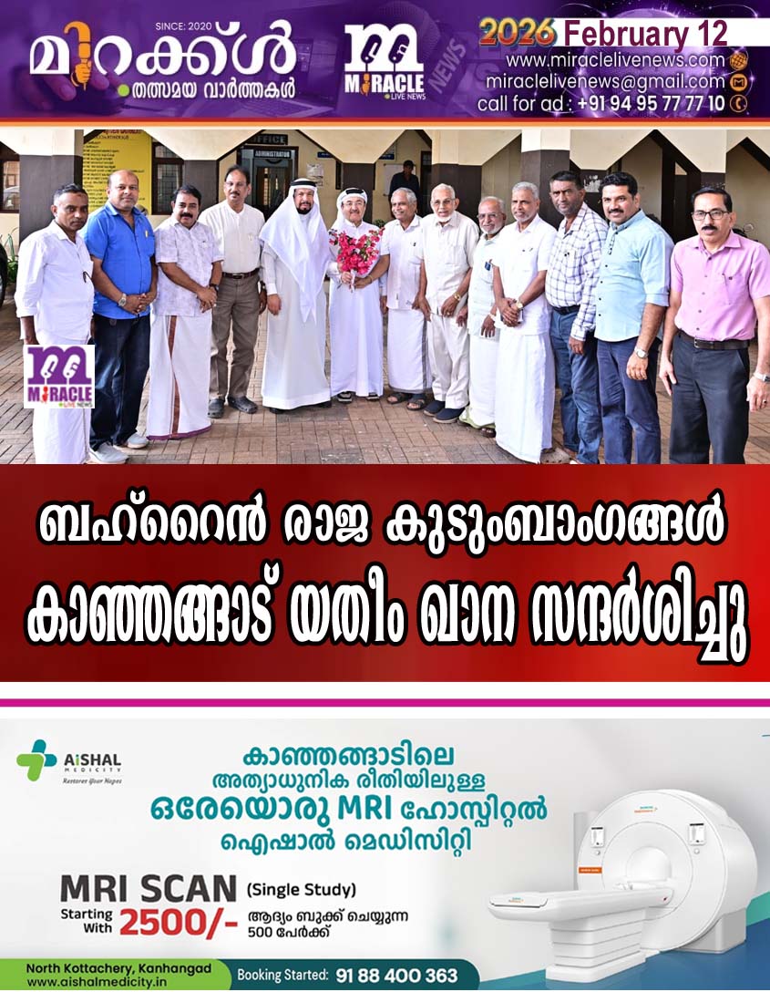 കാഞ്ഞങ്ങാട് : ബഹ്റൈന് രാജ കുടുംബാംഗവും മുന് മന്ത്രിയും പാര്ലമെന്റിലെ മാനവ വിഭവ ശേഷി , പരിസ്ഥിതി കമ്മിറ്റിയിലെ ഉപ മേധാവിയുമായ ഡോക്ടര് മുഹമ്മദ് ഹുസൈന് ജനാഹി , രാജ കുടുംബാംഗവും സുപ്രീം കൗണ്സില് അംഗവുമായ ഡോക്ടര് സലാഹ് ബിന് അലി അബ്ദുല് റഹ്മാന് എന്നിവര് കാഞ്ഞങ്ങാട് മുസ്ലീം യതീം ഖാന സന്ദര്ശിച്ചു. യതീംഖാന ക്യാംപസിലെ ഐ ടി സി , ശരീഅത്ത് കോളേജ് ഉള്പ്പെടെയുള്ള വിദ്യാഭ്യാസ സ്ഥാപനങ്ങളും , ഹോസ്റ്റലുകളും ഇരുവരും നടന്നു കണ്ടു. അനാഥര് അടക്കമുള്ള നാനൂറോളം വിദ്യാര്ത്ഥികളുടെ വിദ്യാഭ്യാസ പുരോഗതിക്കും പരിപാലന സംരക്ഷണത്തിനും നടത്തുന്ന ശ്രമങ്ങളെ ഇരുവരും പ്രശംസിച്ചു.